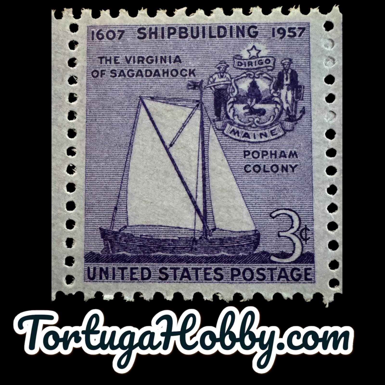 3-cent United States postage stamp issued in 1957, commemorating the 350th anniversary of America's commercial shipbuilding industry. Here's more information about the stamp: Subject: The stamp features "The Virginia of Sagadahock," which was the first American ship used in international trade, built at the Popham Colony in Maine in 1607. Issuance: It was issued on August 15, 1957, in Bath, Maine, to coincide with the founding date of the Popham Colony. Design: The stamp depicts a typical early 17th-century pinnace and incorporates the State Seal of Maine. Significance: This stamp celebrates the beginning of America's commercial shipbuilding, a significant historical event in the nation's development. |