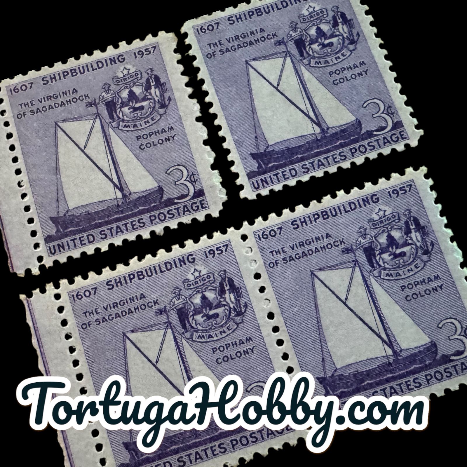 1957 - 350th Anniversary Of Americas Ship Building Industry 3-Cent Stamp - 4 Stamps