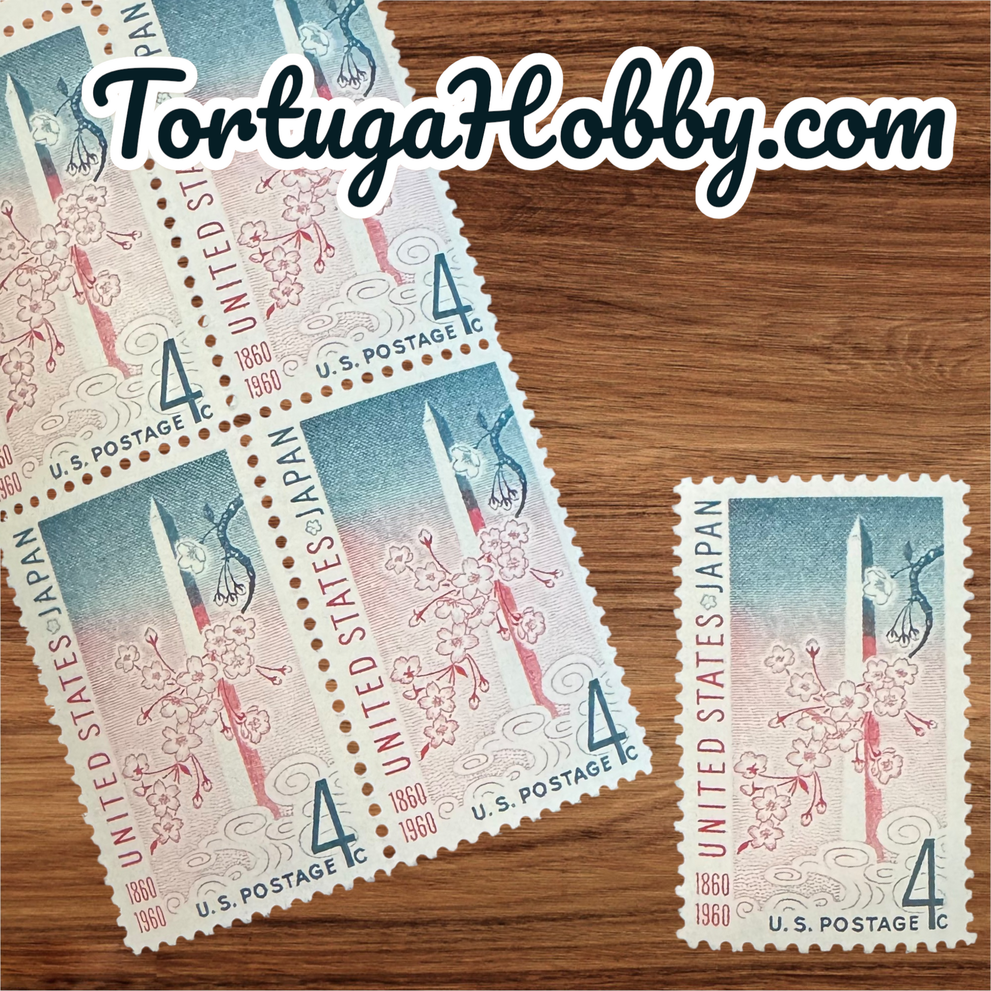 - Design: The stamps feature the Washington Monument alongside Japanese cherry blossoms, symbolizing the friendship and relationship between the two nations.