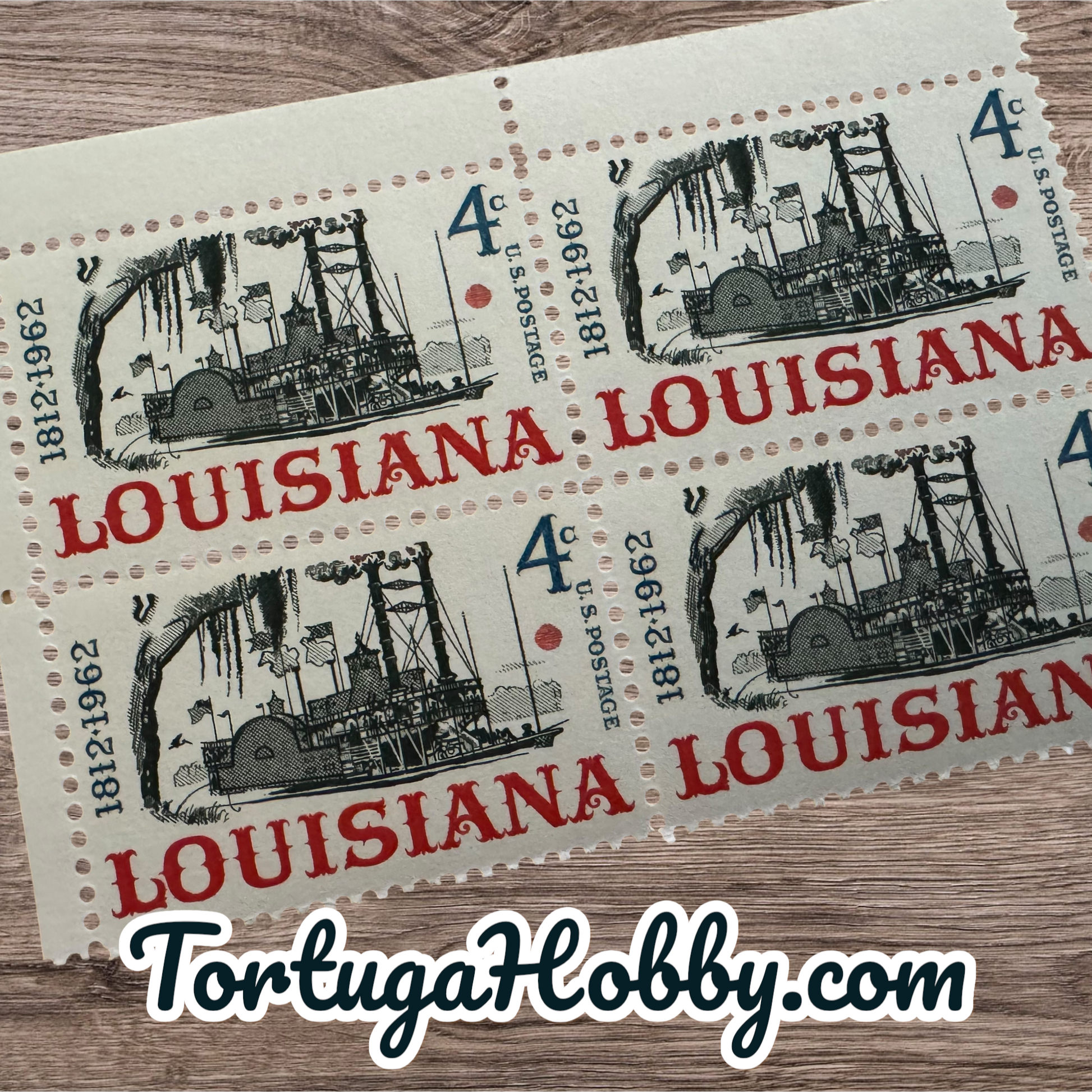 1962 4-cent US postage stamps, Scott #1197, commemorating the 150th anniversary of Louisiana Statehood.