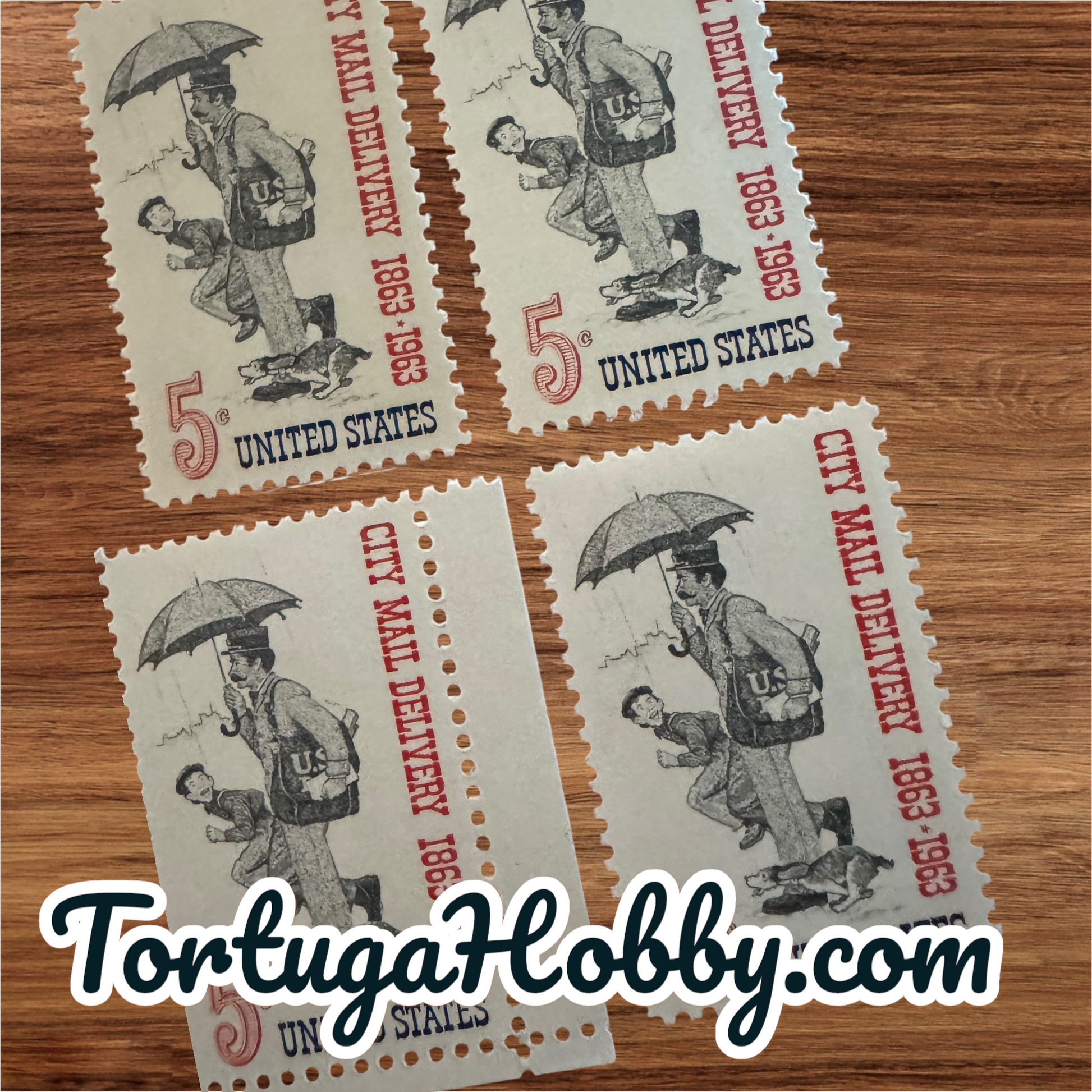 5-cent United States postage stamps issued in 1963, commemorating the centennial of City Mail Delivery (1863-1963).
