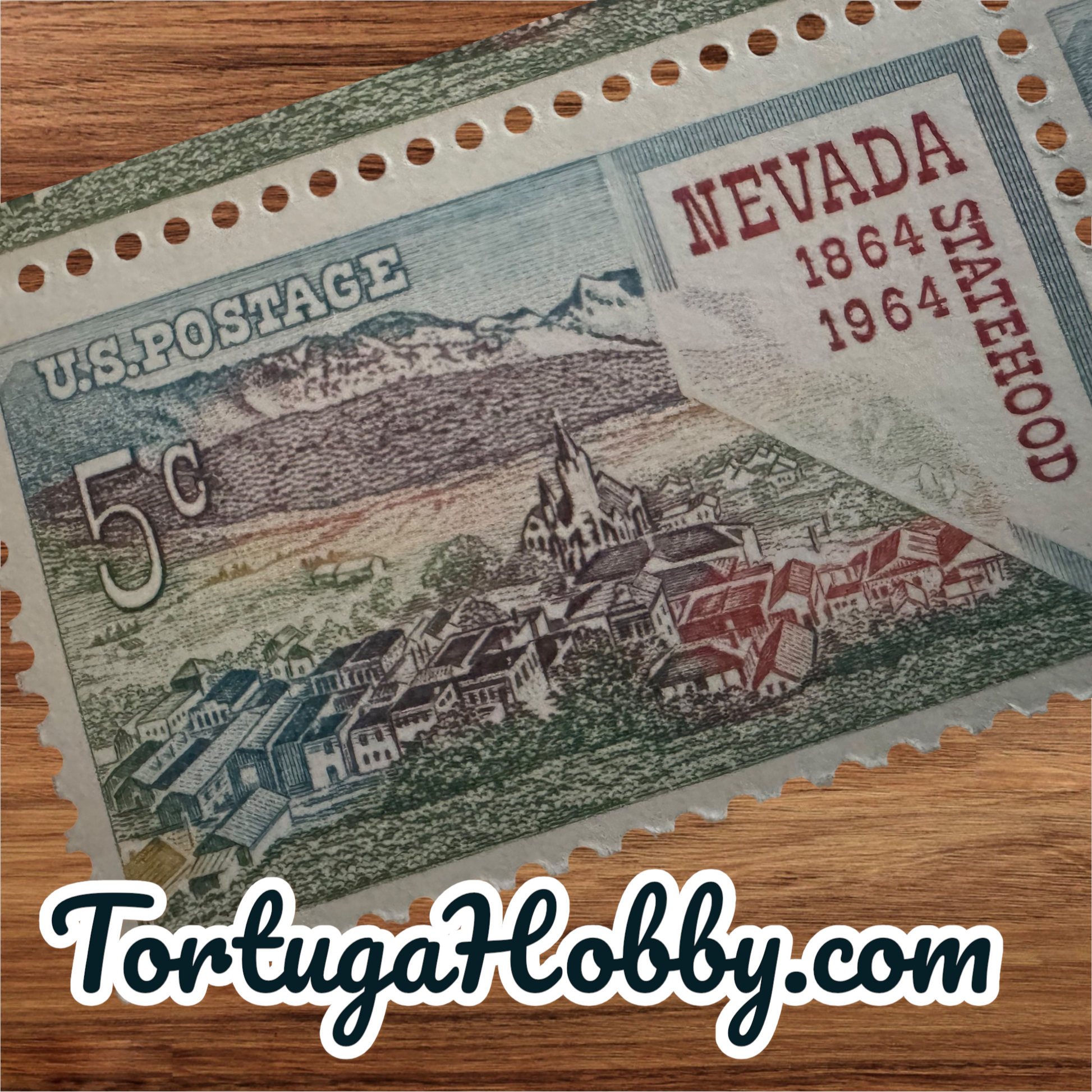1964 United States 5-cent postage stamp commemorating the 100th anniversary of Nevada's statehood. Design: The stamp features a map of Nevada, an image of the historic mining town of Virginia City, and mountains in the background. Purpose: It was issued to celebrate the centenary of Nevada joining the Union in 1864. Details: The stamp, cataloged as Scott #1248, depicts a significant moment in Nevada's history, highlighting its mining heritage. |
