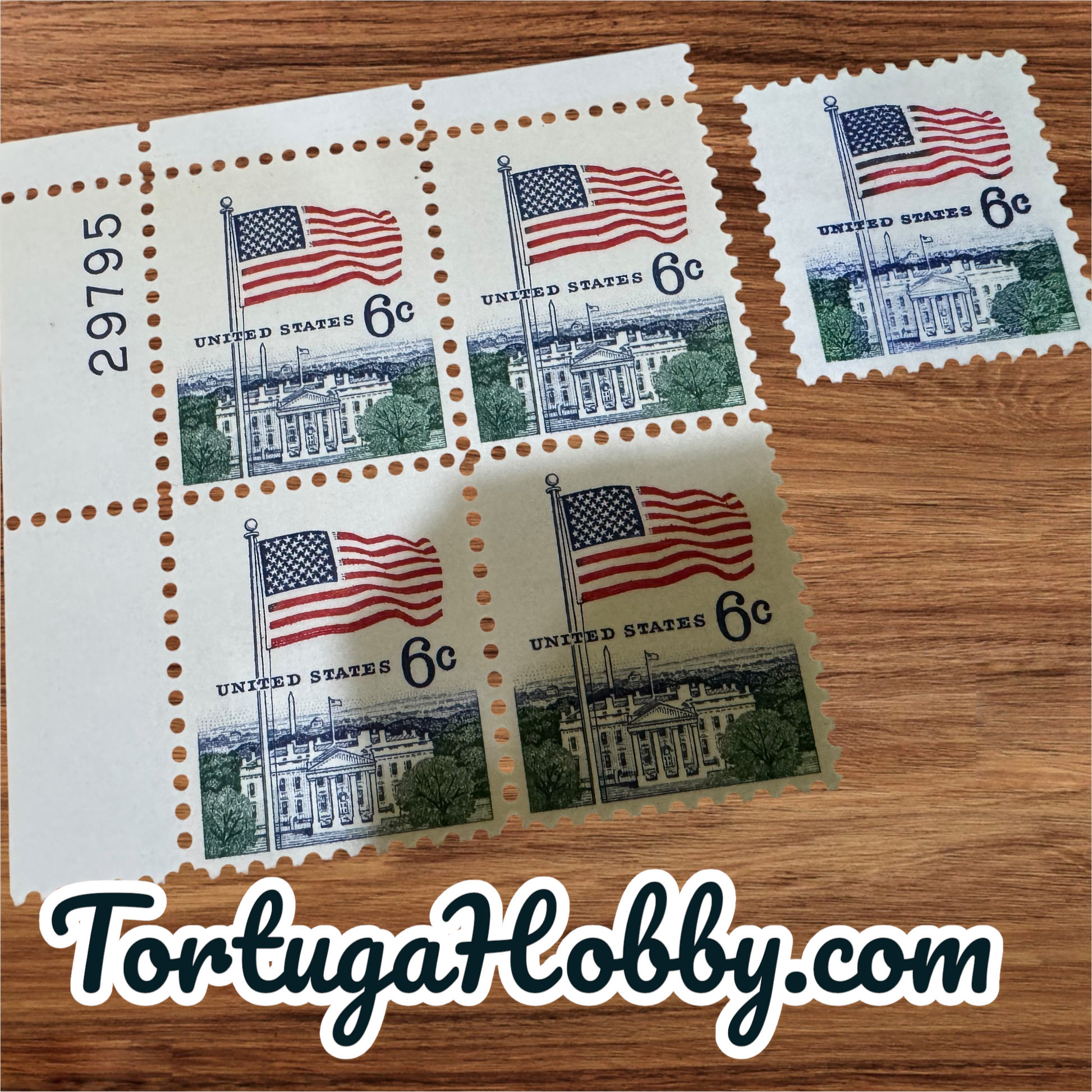 6-cent US postage stamps, Scott #1338, featuring the American flag over the White House.