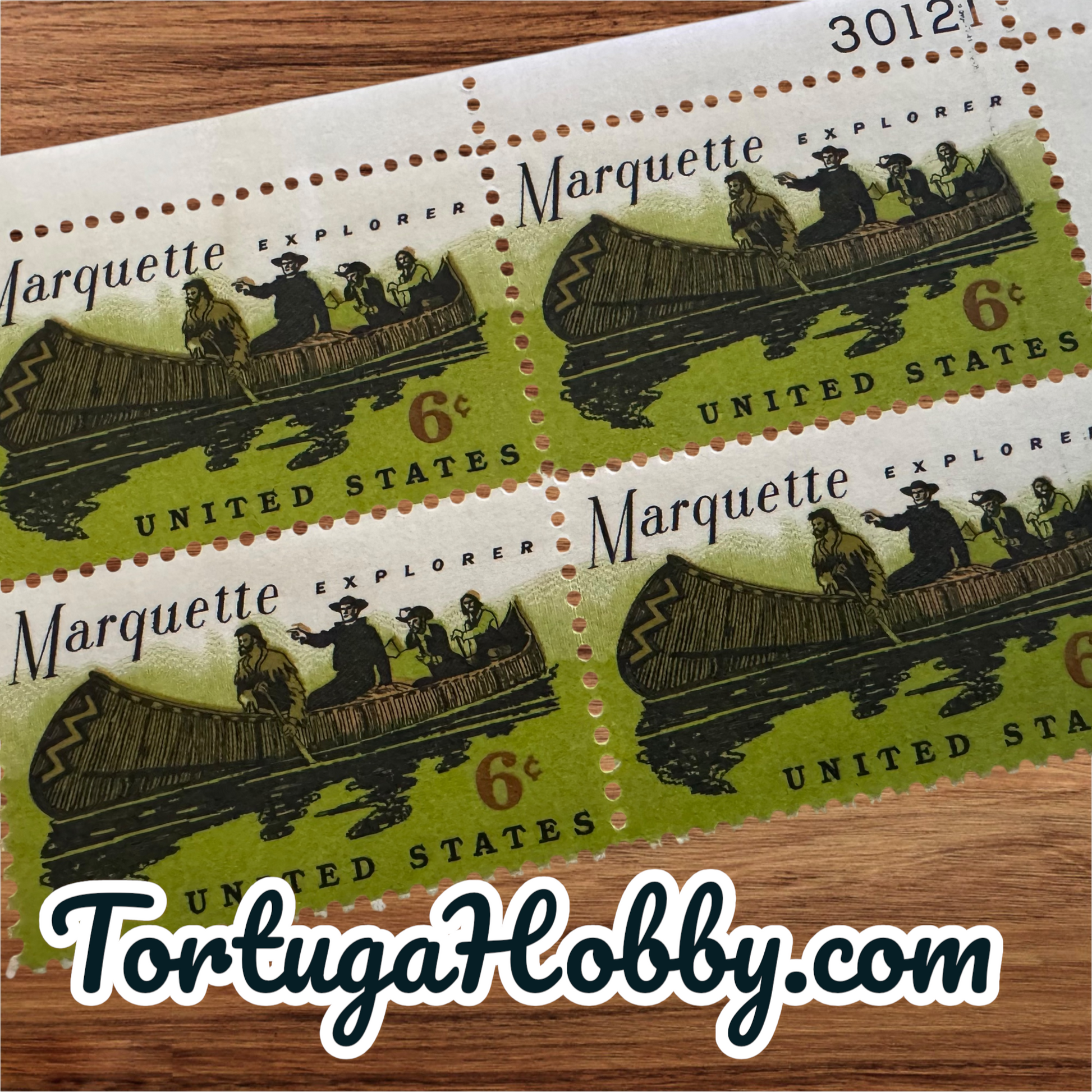 6-cent United States postage stamps featuring "Marquette Explorer".