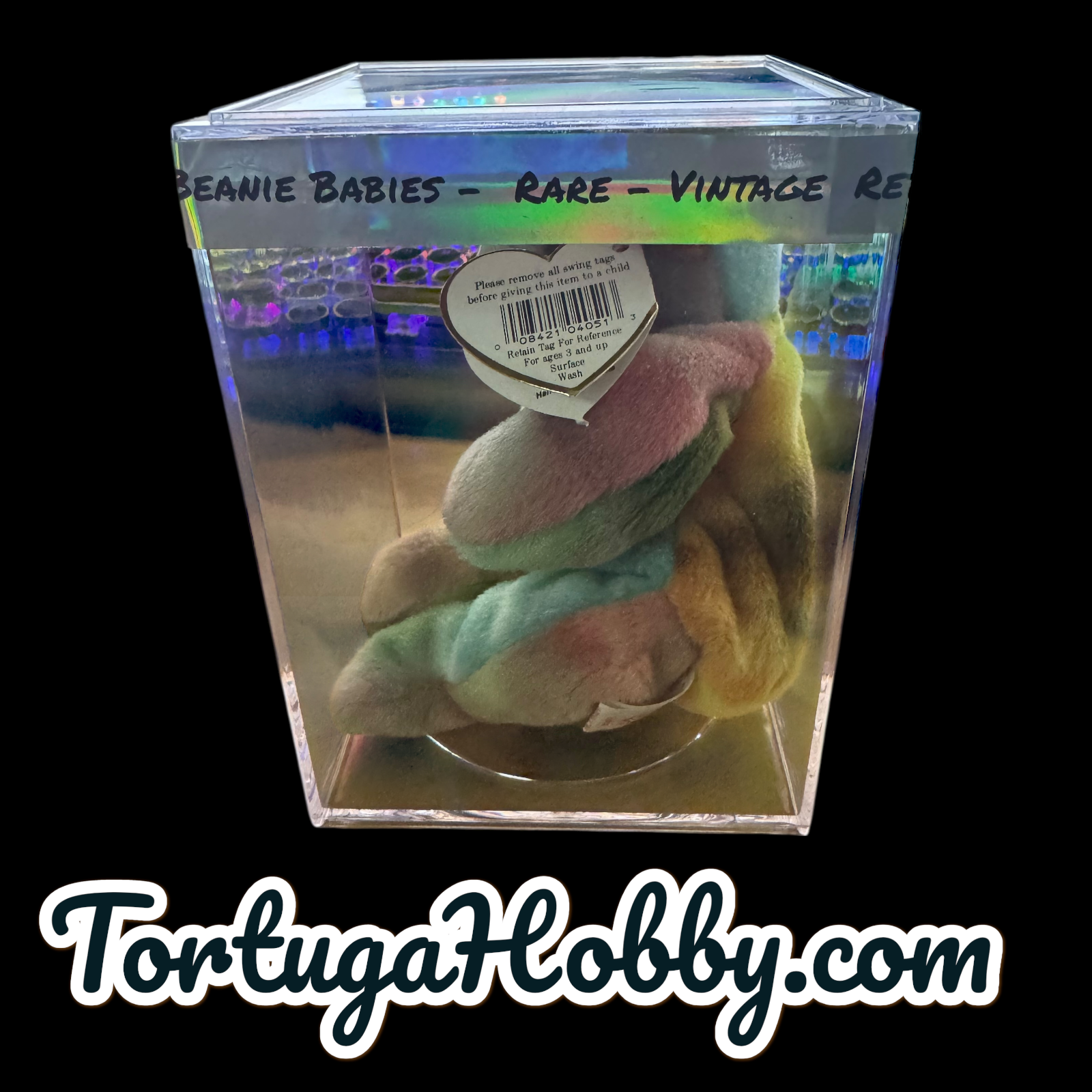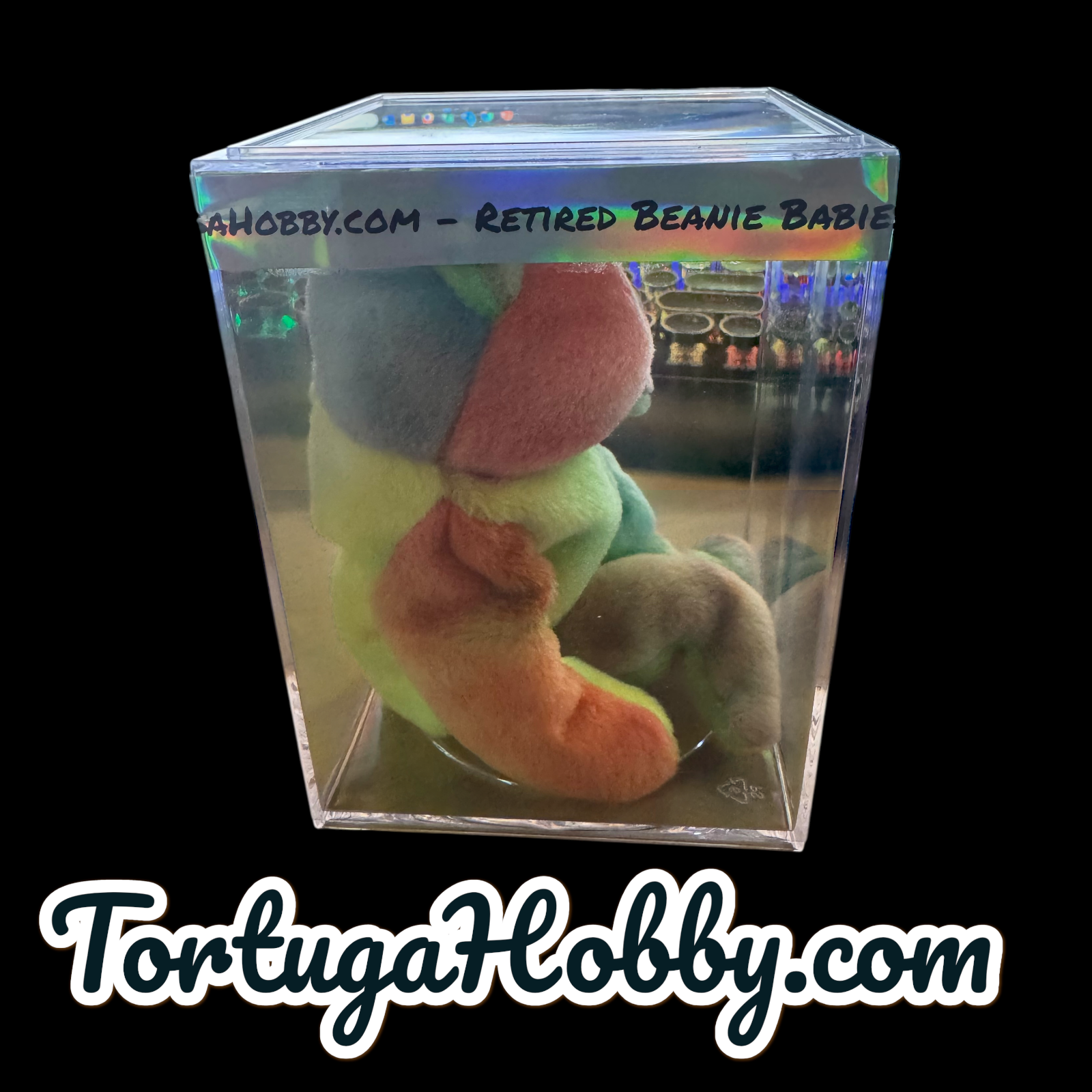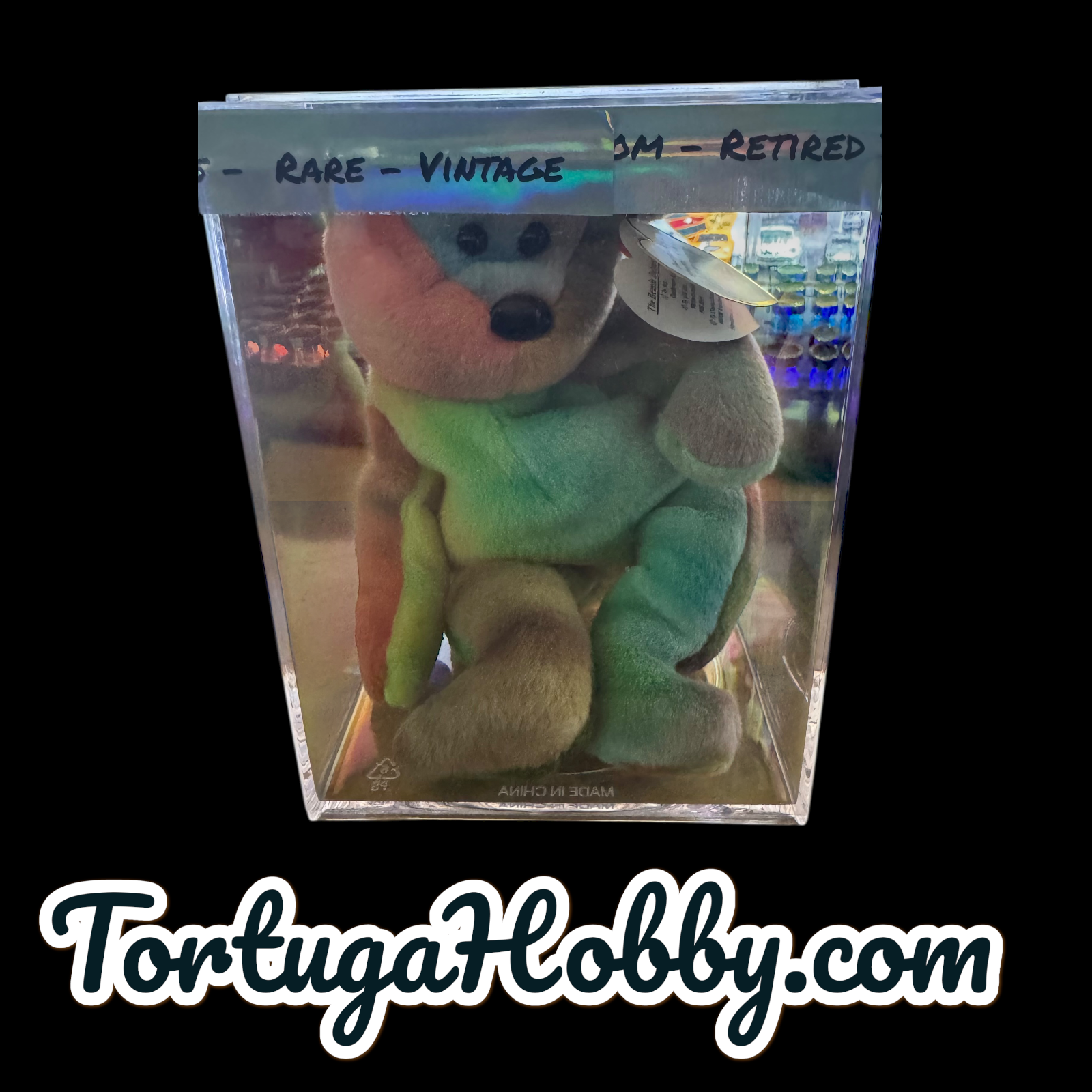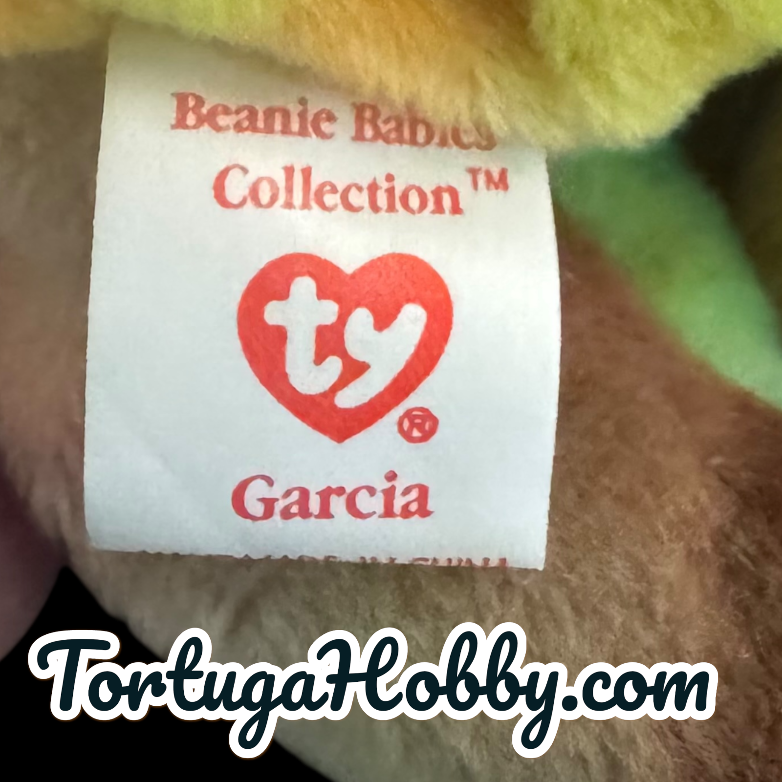 This is a Ty Beanie Baby named Garcia the Bear with PVC Pellets. Garcia is a tie-dye bear from the Ty Beanie Babies collection, known for its unique color patterns due to the tie-dye process. It was introduced on August 1, 1995, and retired on May 11, 1997. Garcia was replaced by a similar bear named Peace, reportedly due to an alleged lawsuit by the Garcia family regarding the use of the name. Garcia bears, especially those with specific tag errors or older generations, are considered rare and collectible items among Beanie Baby enthusiasts. Here are the errors found in Garcia bears. You can decide if this is the one you need for your collection: Swing Tag (Hang Tag) Errors and Variations: Misspelled "Oakbrook": The city of Ty Inc.'s location is often misspelled as "Oakbrook" (one word) instead of "Oak Brook" (two words), and sometimes a comma is missing after it. Punctuation Errors: Missing period after "U.S.A" or an extra period after "IL.". Extra space after "BIRTH" before the colon in "DATE OF BIRTH:". Poem Errors: The first line of the poem may incorrectly read "use to" instead of "used to". Date Inconsistencies: The numerical date of birth (e.g., "8-1-95") with dashes on the swing tag, rather than the fully written-out date, is considered a variation found on very early Beanies. Style Number Placement: On very early Garcia Beanies, the style number might appear directly next to the name "Garcia™". Tush Tag Errors and Variations: Date Discrepancy: A common and significant error is a mismatch between the swing tag birth date (e.g., 1995) and the tush tag copyright date (e.g., 1993). Missing Trademark Symbols: Early tush tags may lack the "TM" next to the name Garcia or the "®" after "Collection". Missing Star: The red star next to the Ty heart on the tush tag can be missing on earlier versions. "Oakbrook" Misspelling: Similar to the swing tag, "Oakbrook" may be misspelled and/or missing a comma after it. Punctuation Errors: A period might be missing after "P.V.C.". Missing Stamp/Style Number: Early tush tags might also be missing the red stamp inside or the style number. "SUFRACE" vs. "SURFACE": An older tush tag variation includes the misspelling of "SURFACE" as "SUFRACE" in the washing instructions, later corrected. What do the tags mean? Ty Beanie Baby hang tag, easily recognizable by its iconic red heart shape with the yellow star and the words "BEANIE ORIGINAL BABY". Generation Identification: The presence of the yellow star with "Original Beanie Baby" on the front of the tag indicates it's a 4th Generation hang tag or later (Gen 4 or Gen 5, if considering font changes). Key Features of Later Generations: These generations (4th and 5th) introduced more detailed information inside the tag, including the Beanie Baby's birthdate and a unique poem. Significance: The hang tag is a crucial element for authenticating and determining the value of a Beanie Baby, as collectors often look for specific tag generations and potential errors, although the impact of errors on value can be debated among collectors. Associated Beanie Babies: This type of tag would be found on numerous Beanie Babies released during the mid-to-late 1990s, including popular ones like Pounce the Cat. |