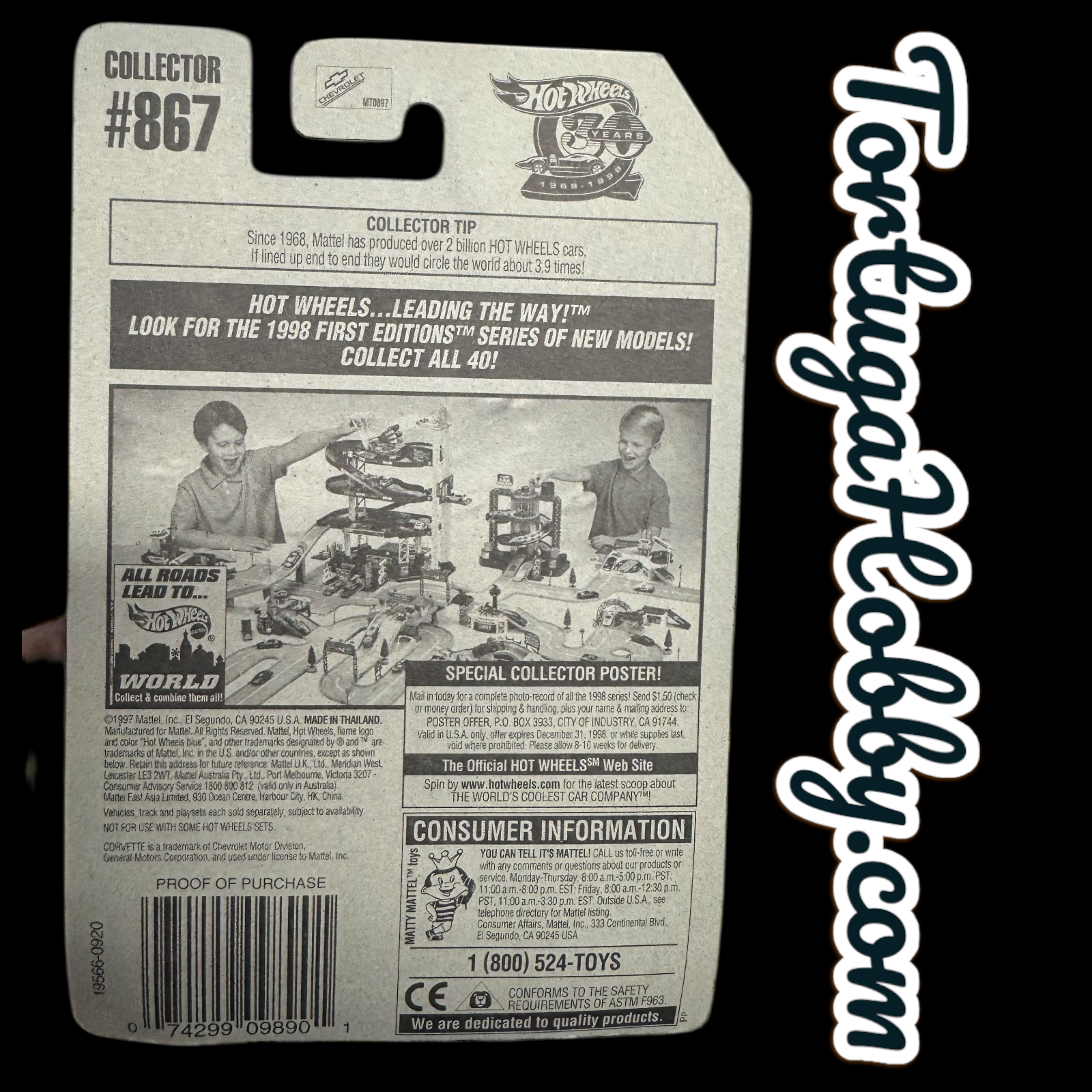 The product is a set of three 1995 Hot Wheels Chevrolet Corvette cars, part of the Mainline series. These diecast vehicles are in a 1:64 scale and feature a multi-color design. Made by Hot Wheels, the cars are part of the mainlines and come in an unopened box. Perfect for both boys and girls aged 17 years and up, these classic Corvette models are a great addition to any toy or diecast vehicle collection. Two half cards are 1995 and the full card is 1997 |