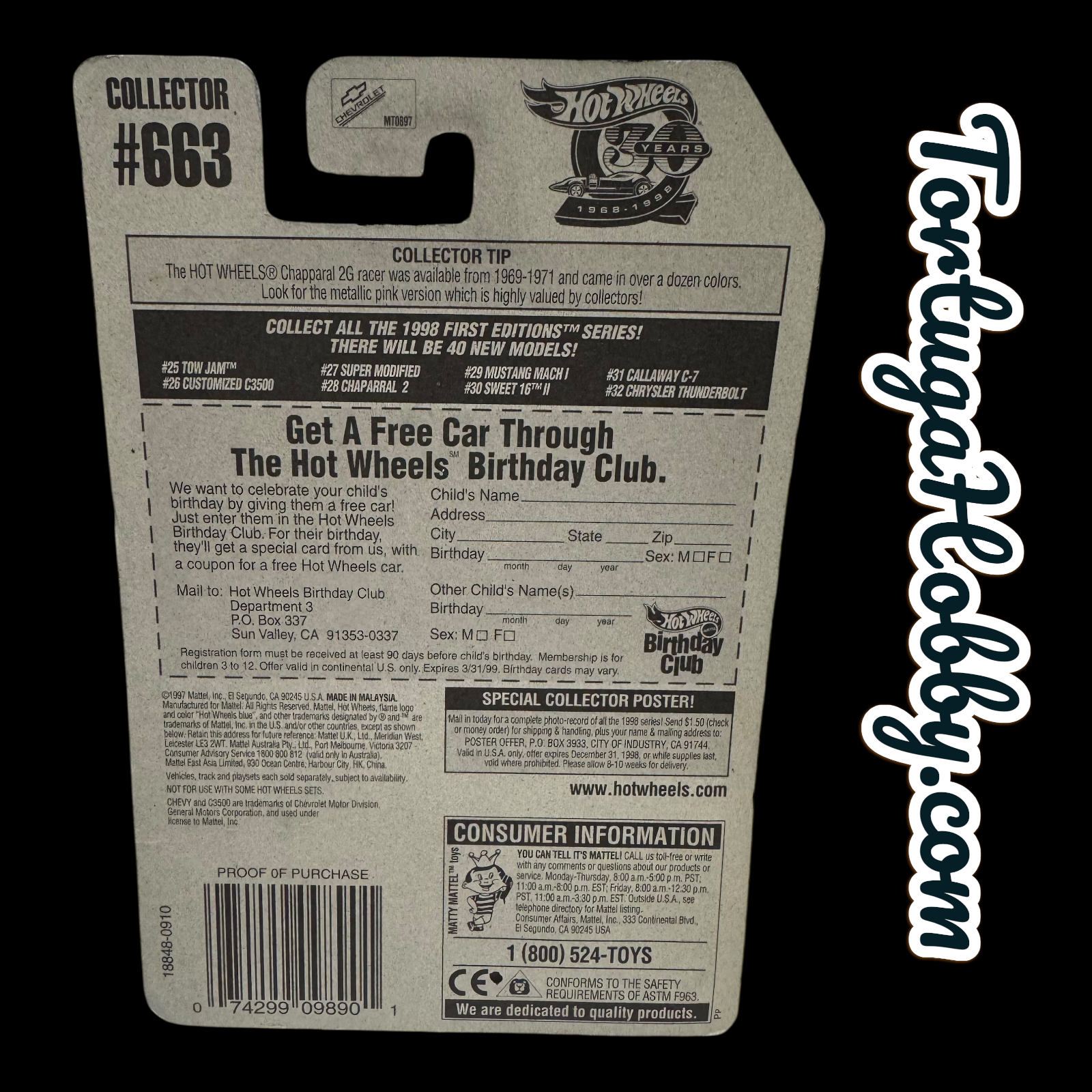- Model Details: It is the #26 of 40 cars in the 1998 First Editions series, and it's a Customized C3500, often referred to as a Chevy or GMC Pickup.