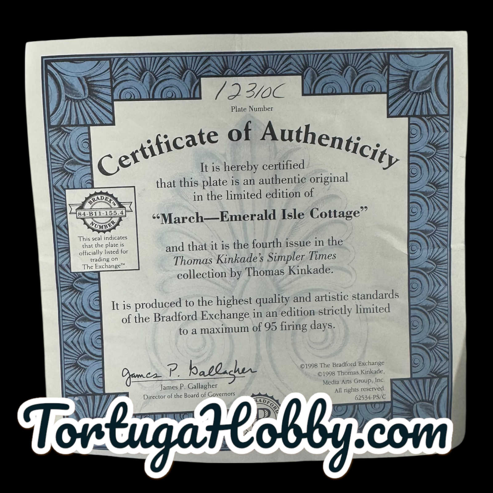 March - “Emerald Isle Cottage” by Thomas Kinkade. This plate is part of the "Simpler Times" collection released by the Bradford Exchange in 1998