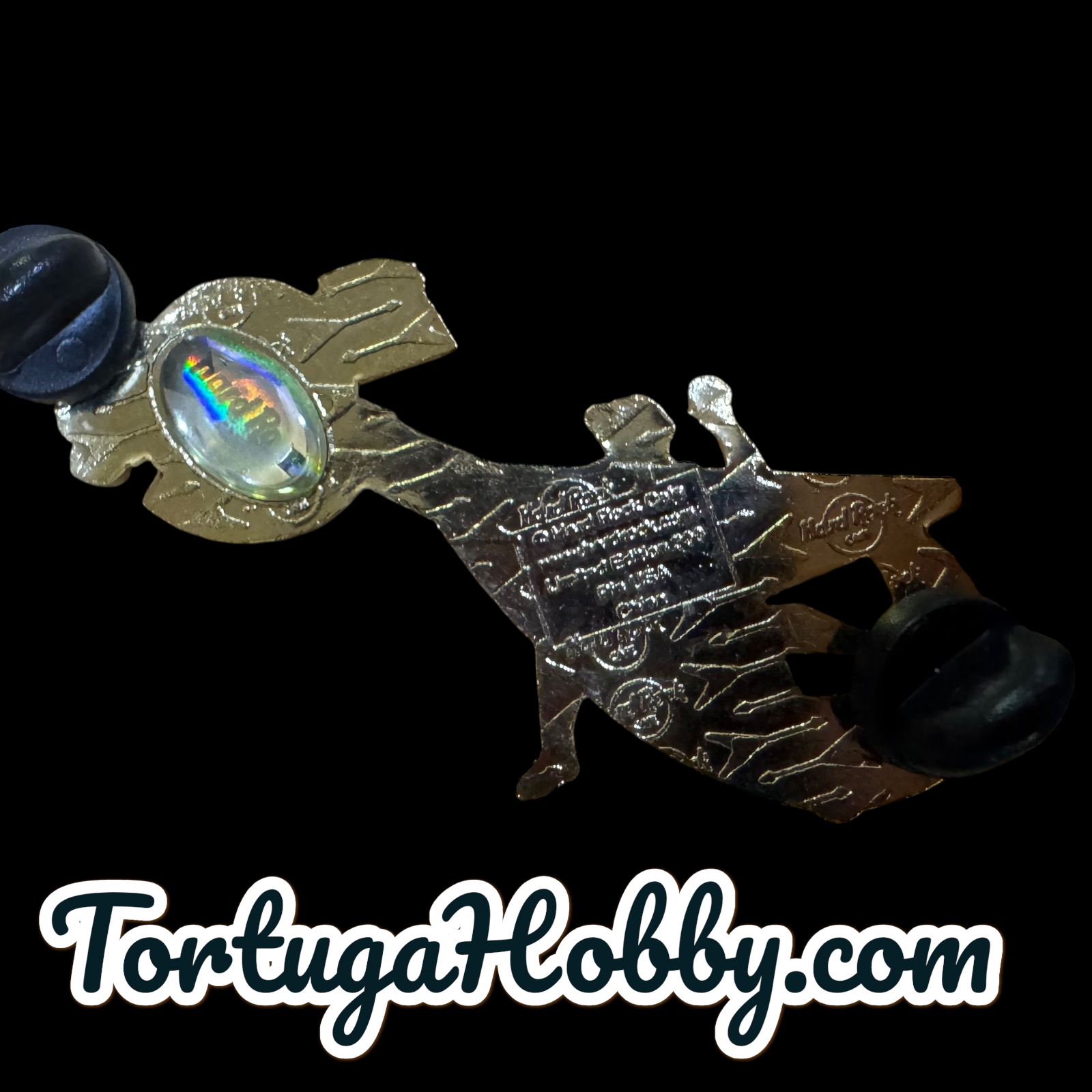 - The guitar-shaped pin has the "Hard Rock Cafe Hollywood" logo on the headstock.