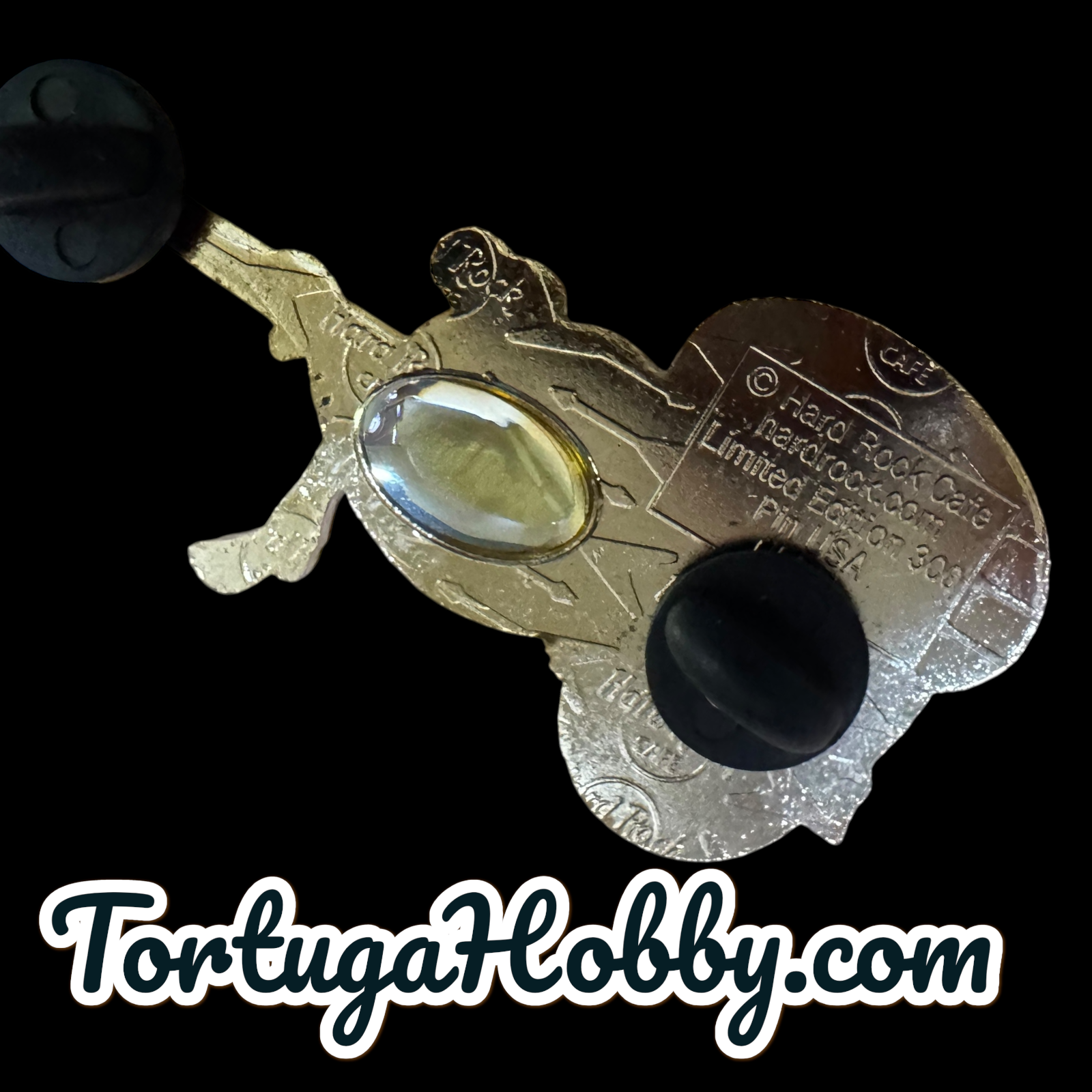 - The guitar-shaped pin has the "Hard Rock Cafe Hollywood" logo on the headstock.