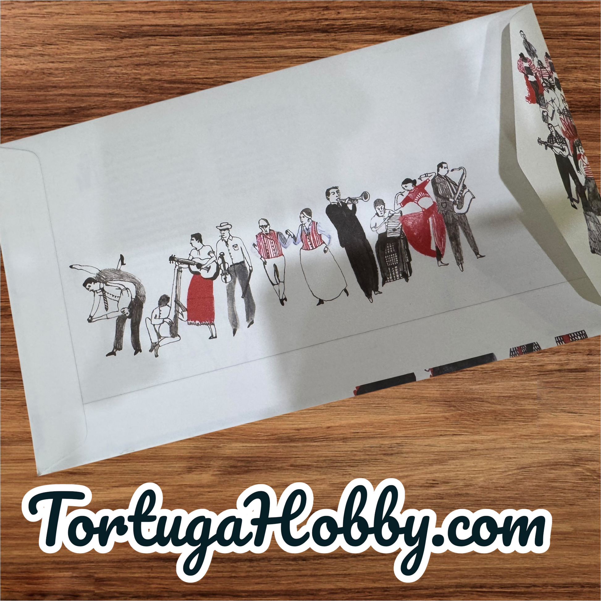 - Stamps Featured: The cover includes five stamps depicting various musical genres and instruments: Asian Sitar (1st class), Caribbean Bass Player (42p), Latin American Maracas (50p), Irish Fiddle (72p), and Black American Blues (£1.19).