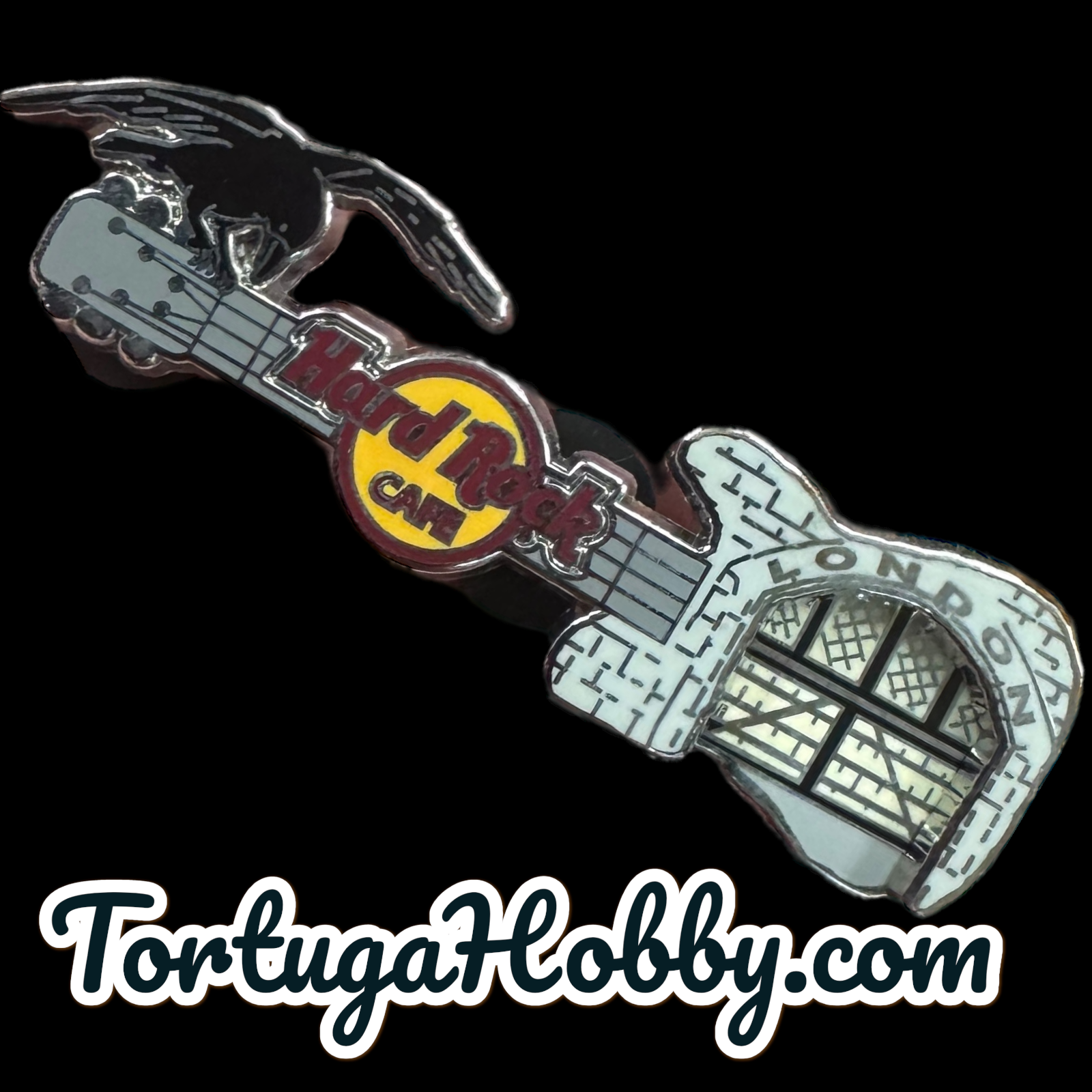 Hard Rock Cafe London collectible guitar pin featured in the image was released in 2010. This specific design is often referred to as the "Hard Rock Cafe London 2010 Core Guitar Palace Pin" |