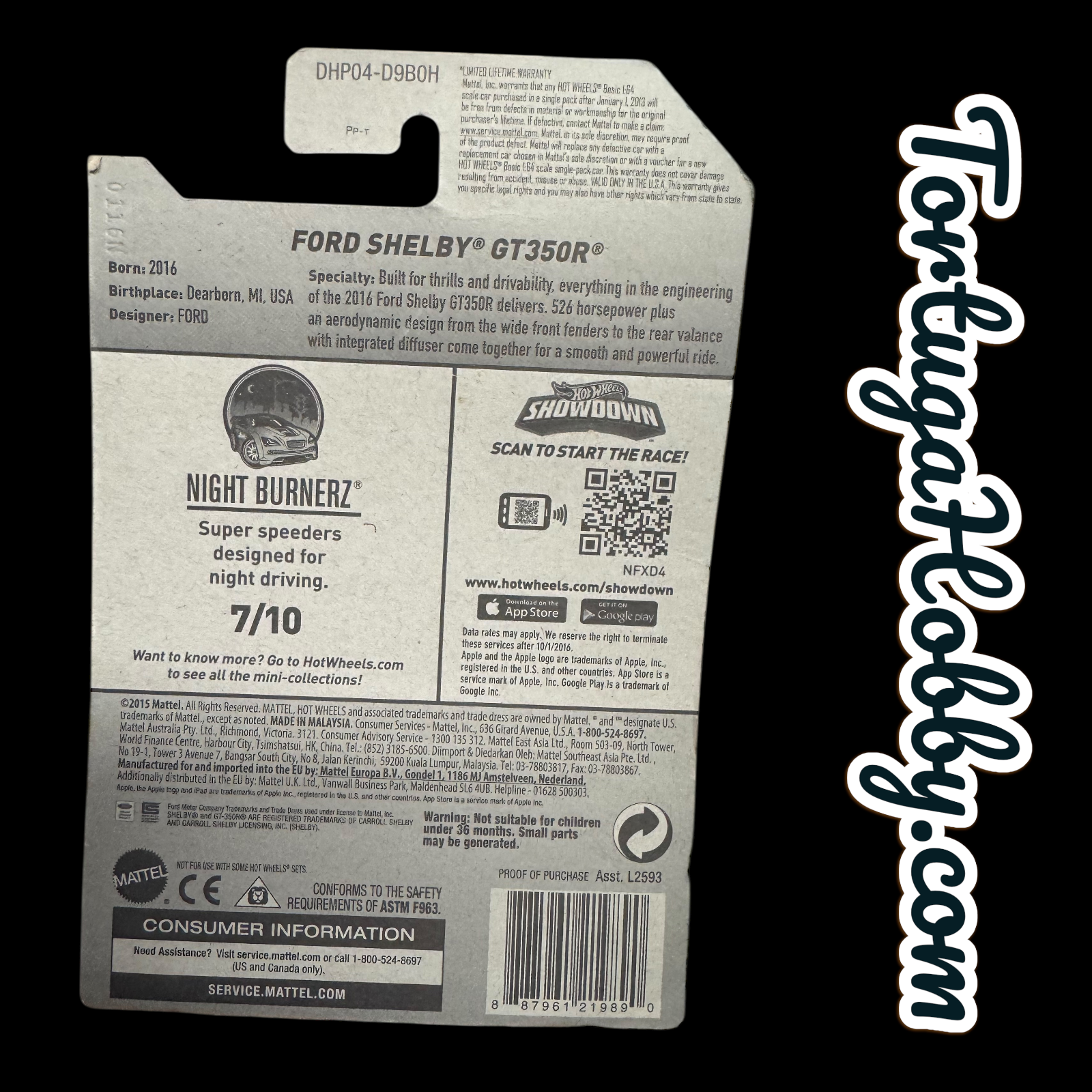 2016 - Hot Wheels Night Burnerz 7/10 - Blue Ford Shelby GT350R 87/250
