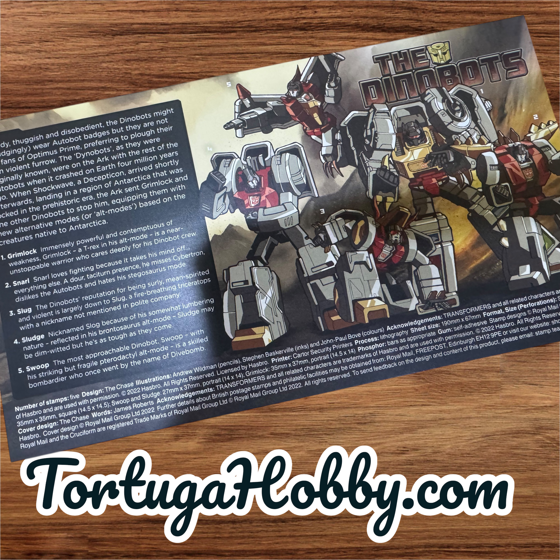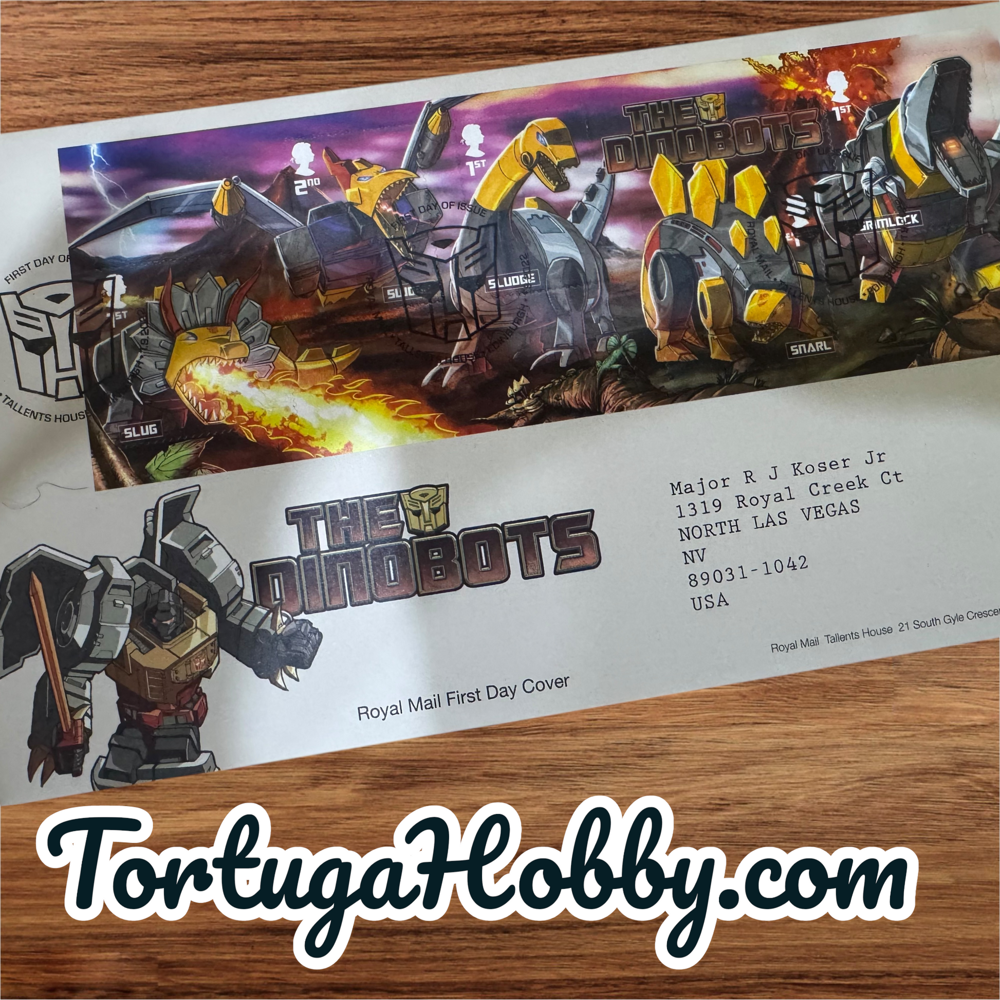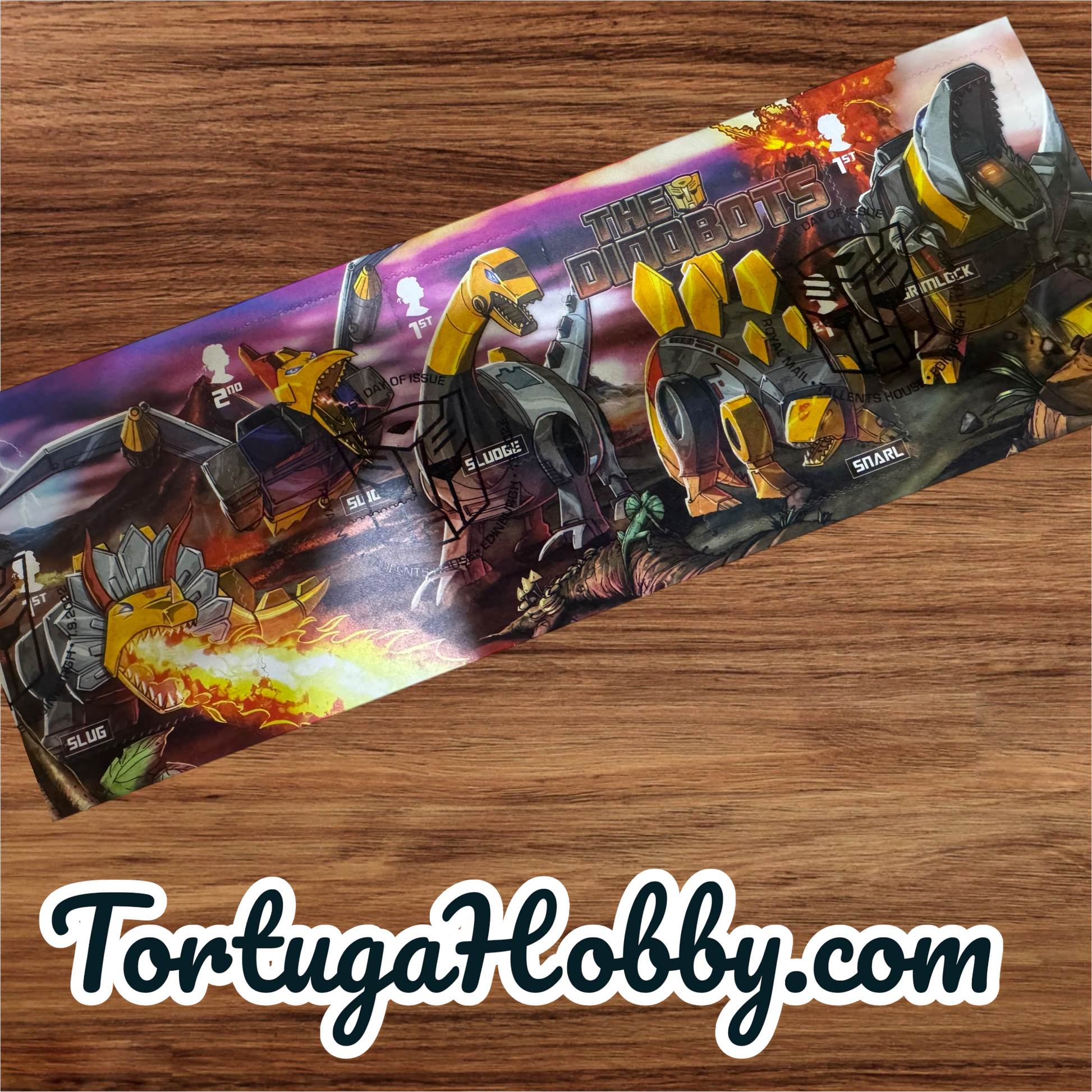 Royal Mail First Day Cover celebrating the Transformers Dinobots, issued in 2022.