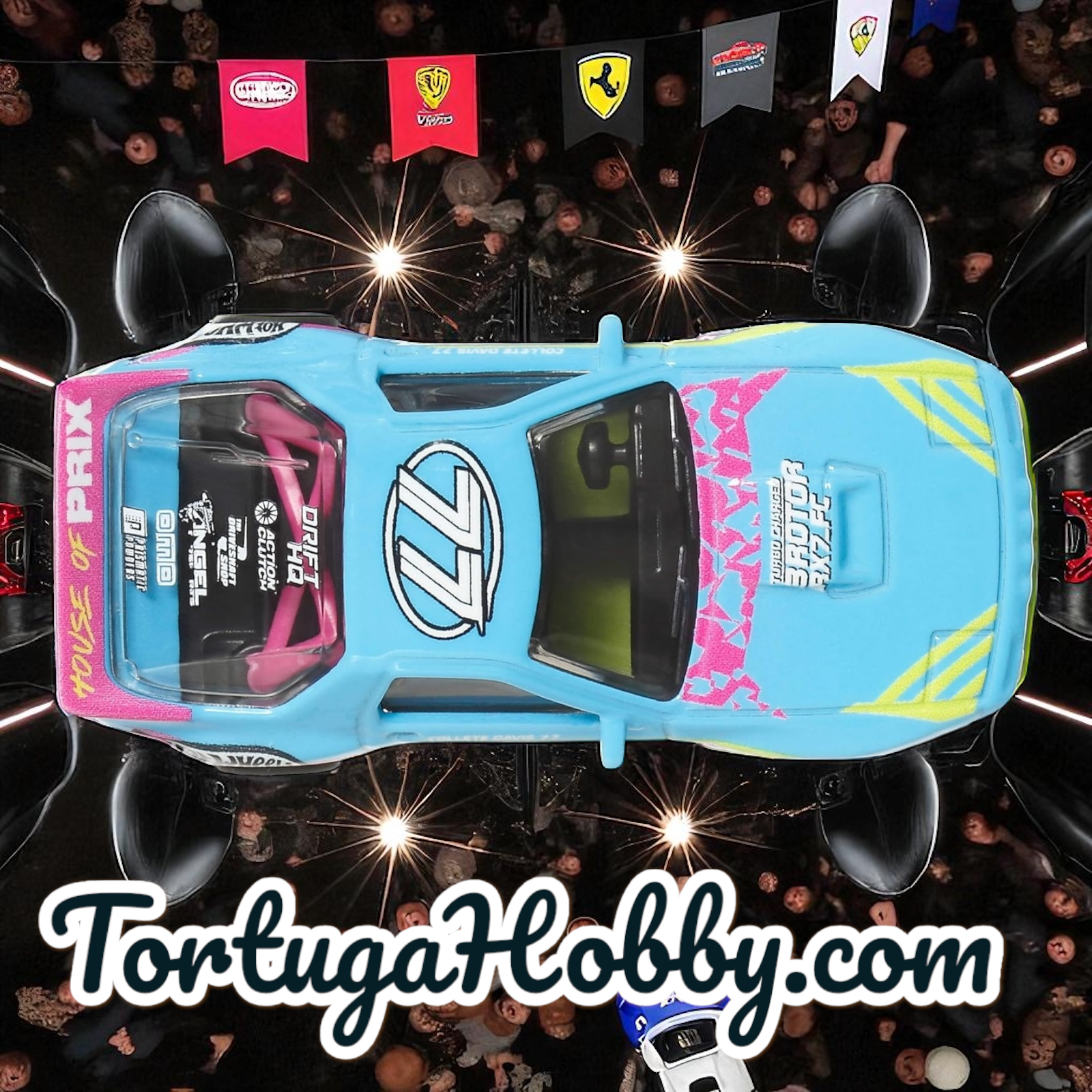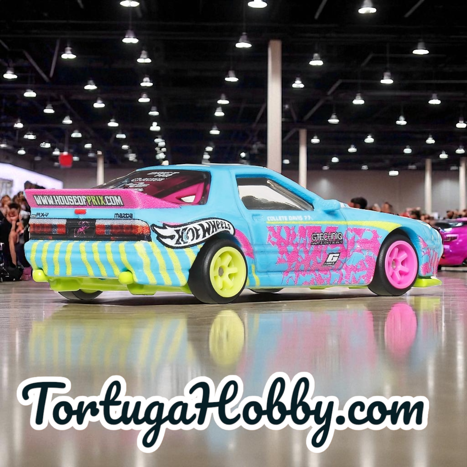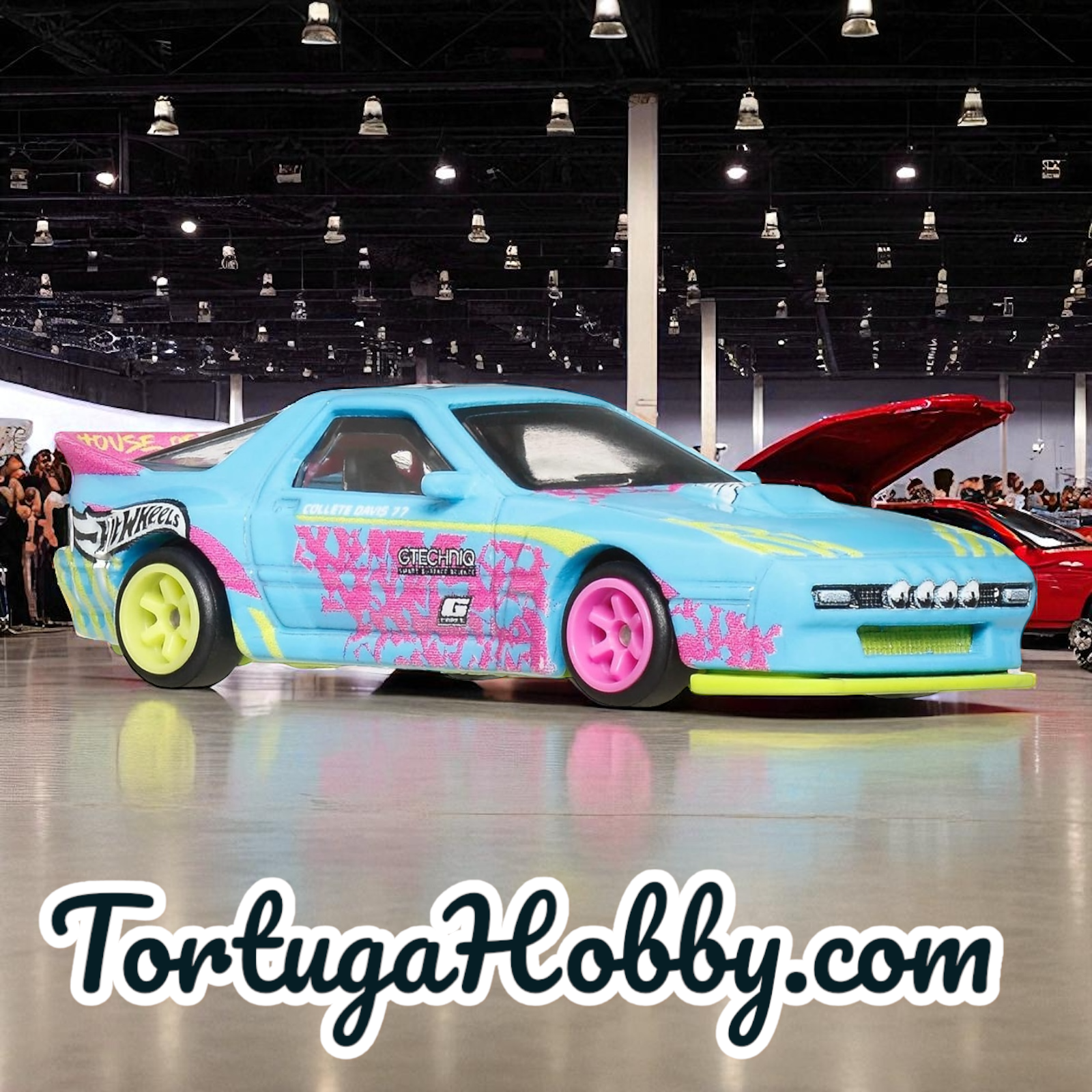 Hot Wheels Premium Car Culture Mazda RX7 FC Pandem. It is a 1:64 scale die-cast model featuring a modified 1990 Mazda RX-7 Turbo with a Pandem body kit. It is part of the Hot Wheels Premium Car Culture series and has Real Riders rubber tires and a Metal/Metal body and chassis. |