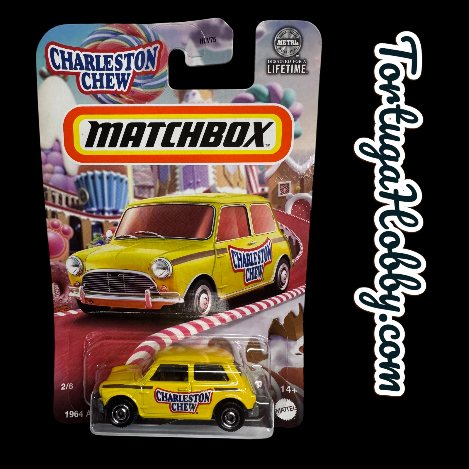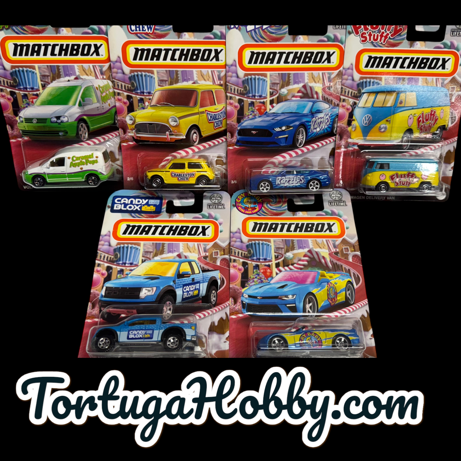 - This set includes six individually packaged vehicles, each featuring designs inspired by popular candies.