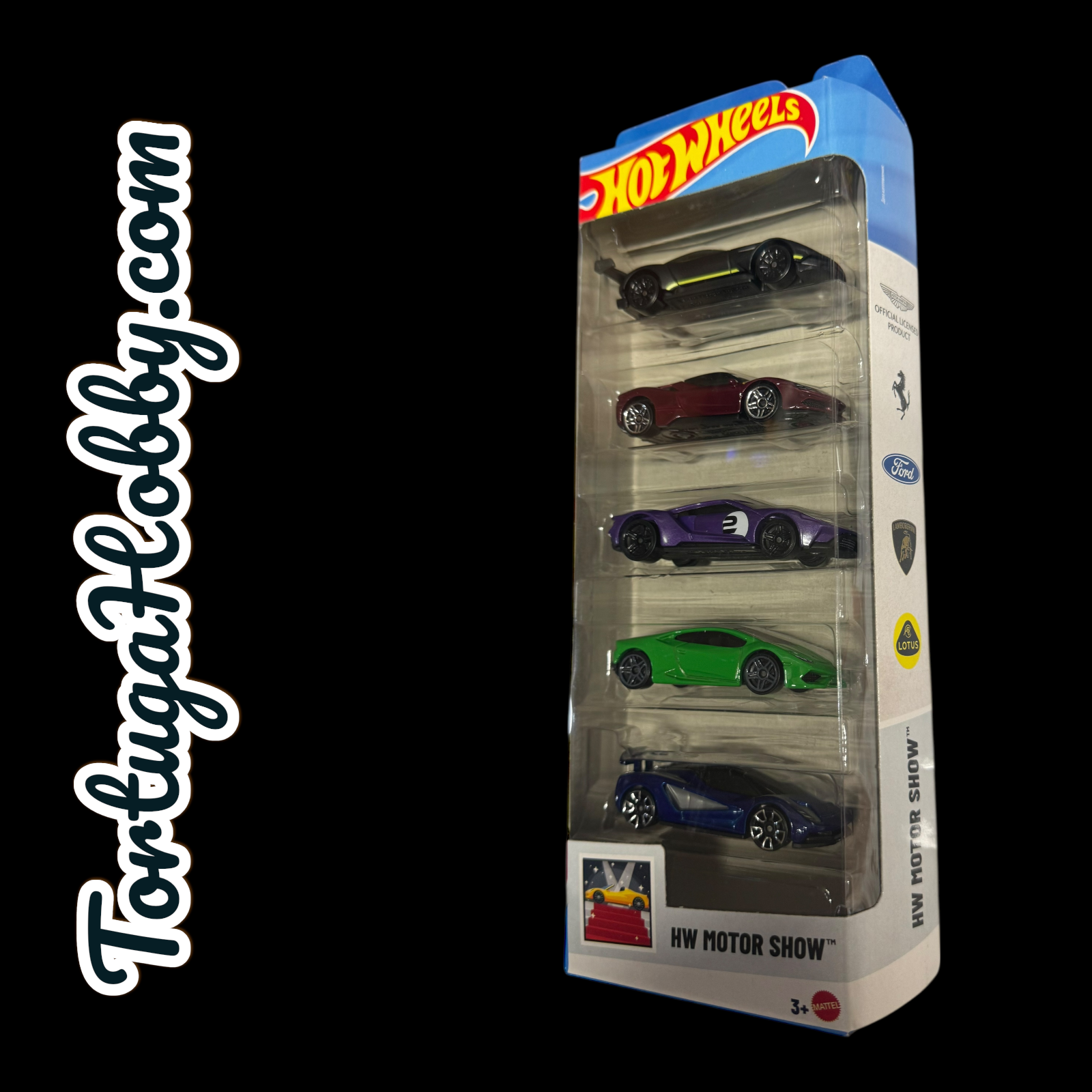 2025 - Hot Wheels - 5 Car Pack - Motor Show Included Ferrari In Pack