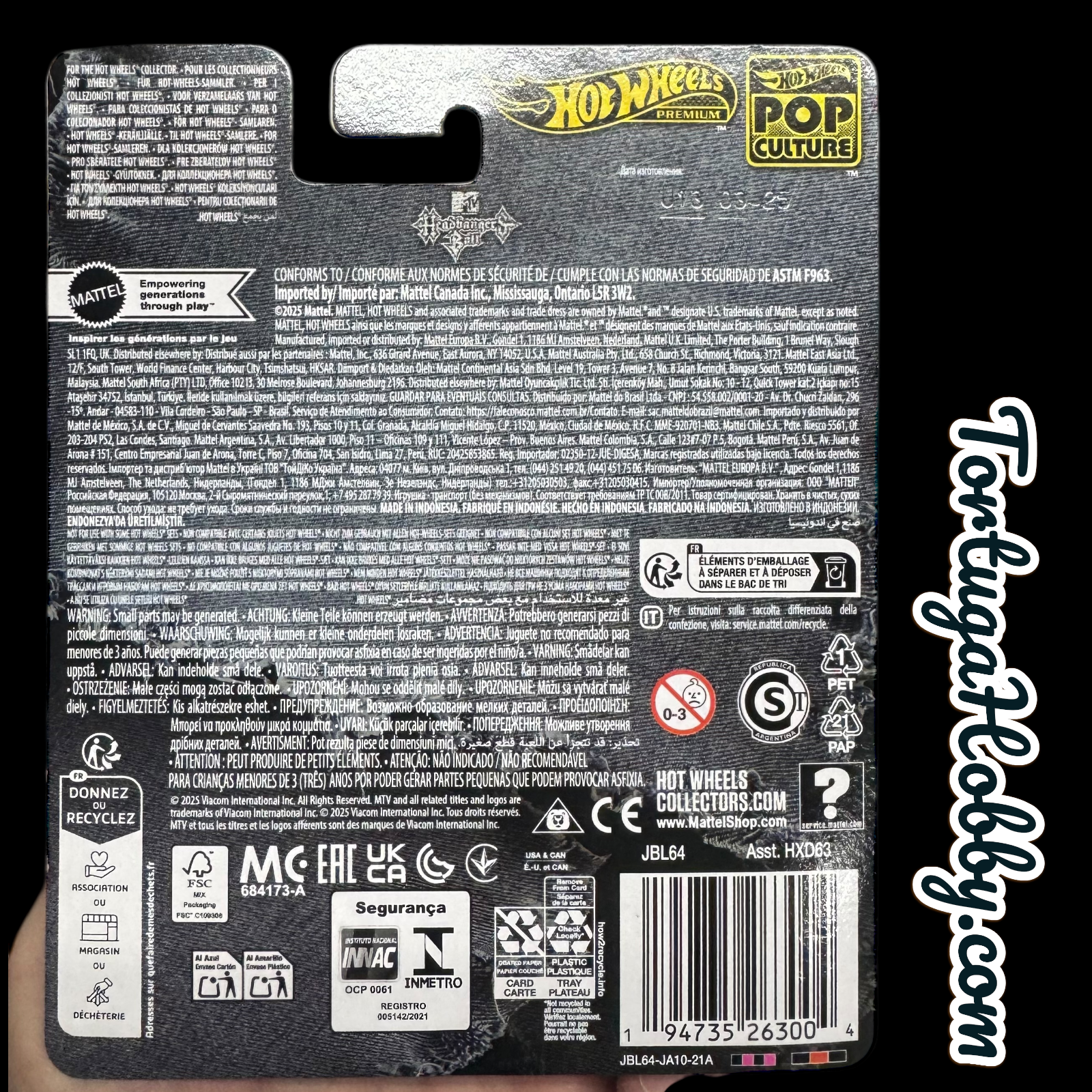 The 2025 Hot Wheels Pop Culture "MTV Headbangers" Ball HW Tour Bus Model BL64-7C is a diecast toy vehicle in 1:64 scale, featuring a black color design with the theme of MTV Headbangers. This collectible item is part of the Hot Wheels Pop Culture series and appeals to adult collectors aged 17 years and up. The model, designed after the HW tour bus, is unopened in its original box and represents the iconic Headbangers Ball character family, making it a sought-after piece for both boys and girls who appreciate contemporary manufactured cars, trucks, and vans. Made in Indonesia, this Hot Wheels model is a must-have for fans of MTV Headbangers.