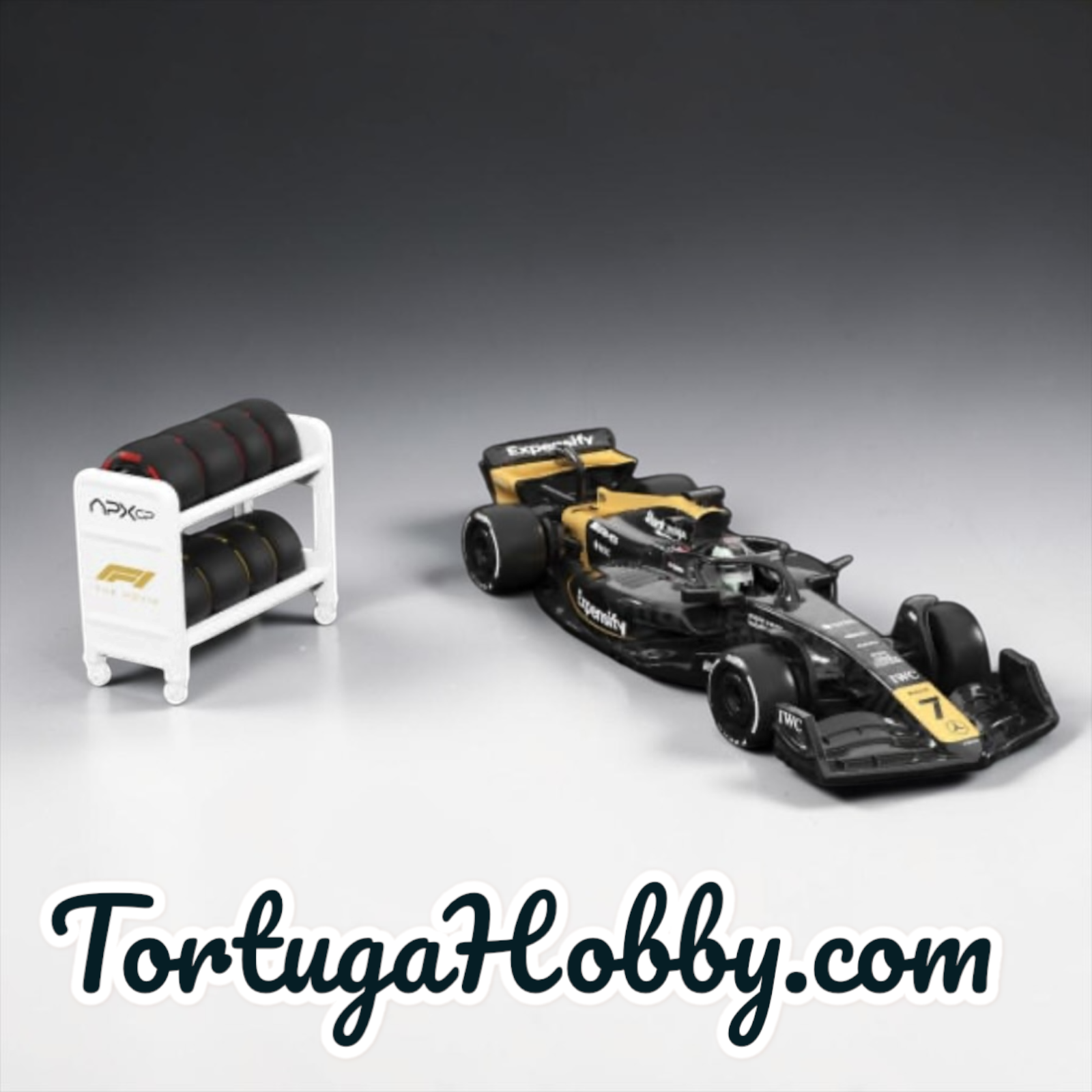 Hot Wheels joins forces with the newest team on the grid, the fictional APXGP, for the F1® The Movie vehicle. True to the racecar driven by the character Sonny Hayes in the film, our casting and the molded driver’s helmet feature authentic golden and black livery. It also comes with three sets of tyres and a tyre storage rack. This is where the pinnacle of motorsports meets the pinnacle of collecting.