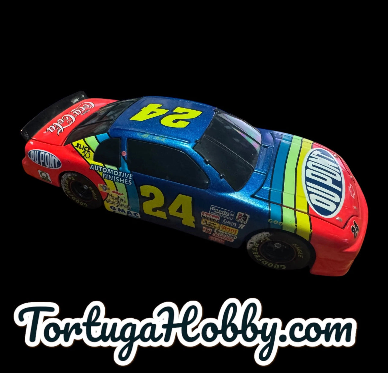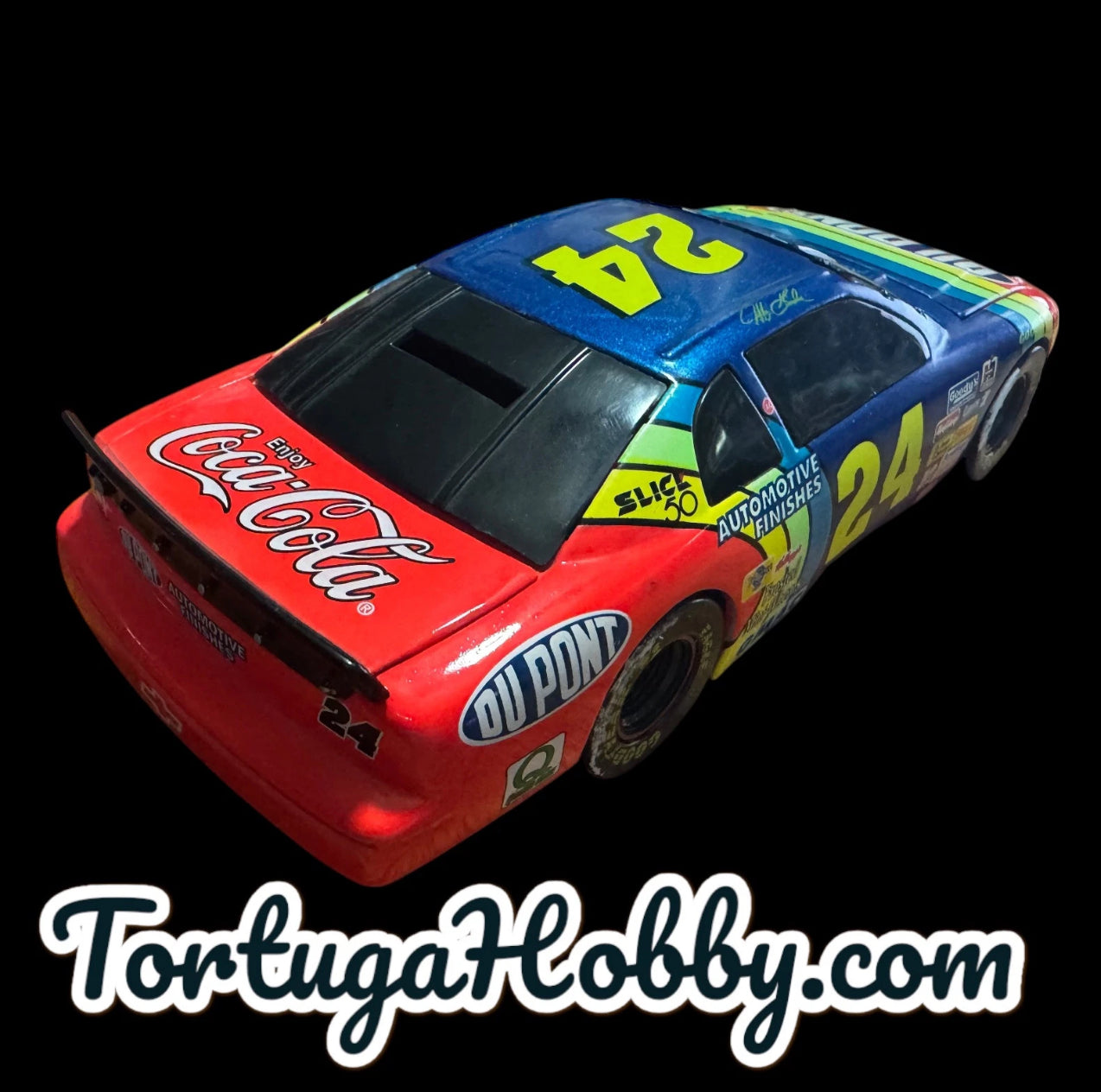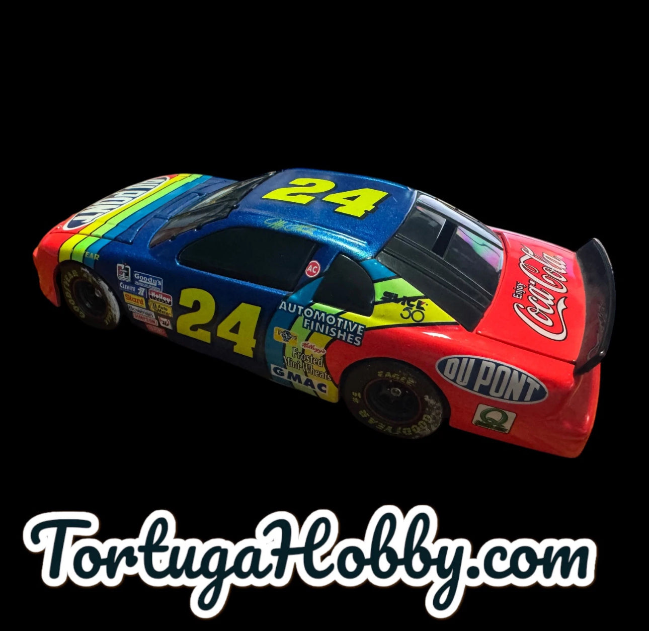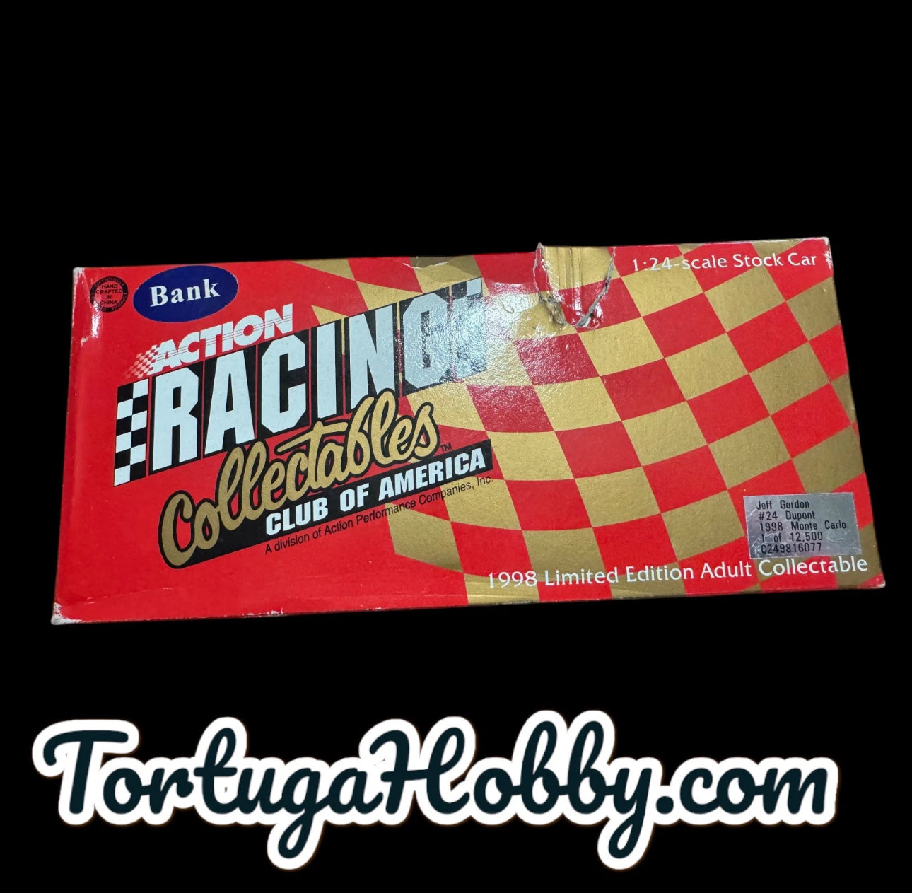 The product is an Action Racing Collectables 1/24 diecast model of Jeff Gordon's #24 DuPont 1998 Ford Monte Carlo NASCAR race car. It is part of the Action Platinum Series and features a multi-color design. This limited edition collectible, one of 7500 produced, is in 1:24 scale and is recommended for adult collectors. The car represents Gordon's time with the Dupont racing team in the Winston Cup series, making it a desirable item for fans of NASCAR and Jeff Gordon alike. Box has damage see pictures and the tires have some rubbing from the styrofoam. |