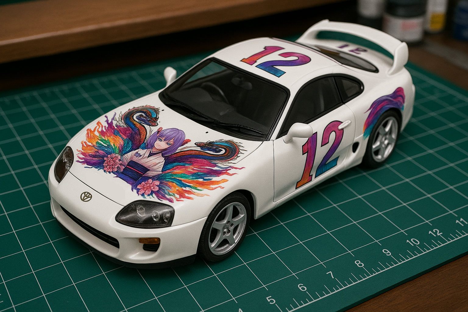 - Design: Anime-style twin dragons intertwined with racing stripes, meticulously crafted to enhance your models with a bold and fantastical look.