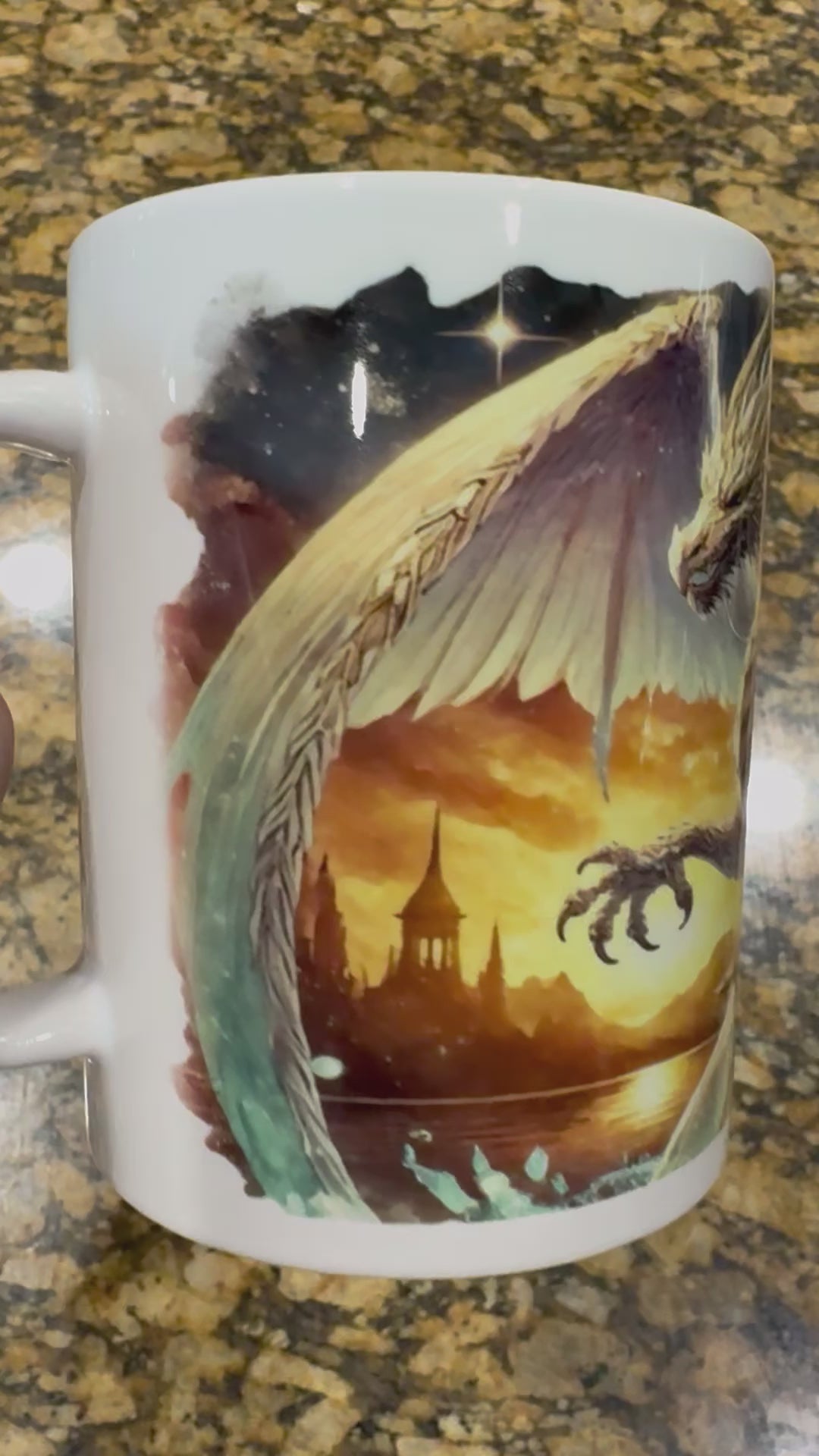 Made from high-quality ceramic, this mug is designed for durability and longevity. The stunning artwork, showcasing the powerful bond between the majestic dragon and the enchanting princess, is printed in vivid detail, bringing an epic fantasy scene to life with every sip.