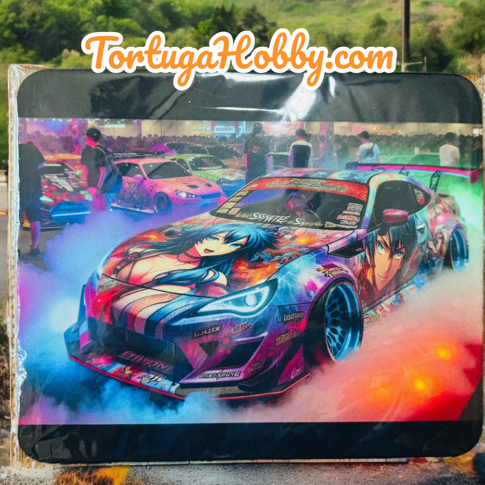 Add some hi-tech graphics to your daily tasks with our Smokin Imports Multi-Mat. This mat features a colorful image of anime-detailed imported cars at a car show with swirling smoke and colorful lights.