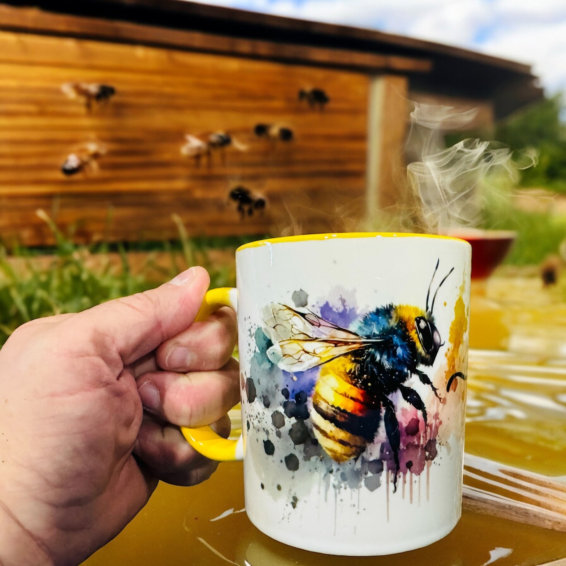 Transform your space with our “Bee Kind” watercolor bee art mug, a delightful fusion of nature and positivity. This piece features a charming, hand-painted bee, intricately detailed with delicate watercolor strokes that bring its wings to life. Surrounding the bee is an elegant array of blooming flowers, adding a splash of vibrant colors that radiate warmth and joy.