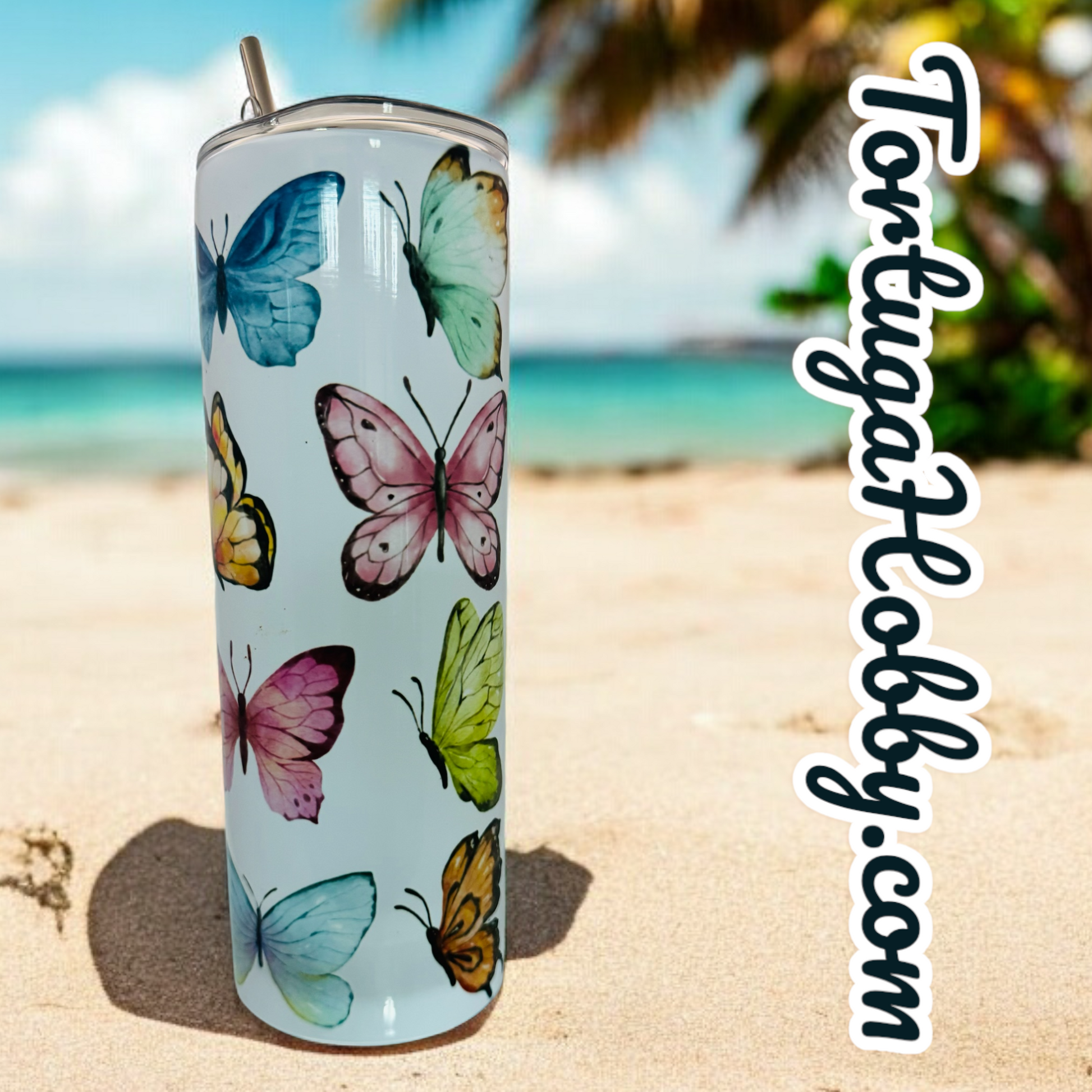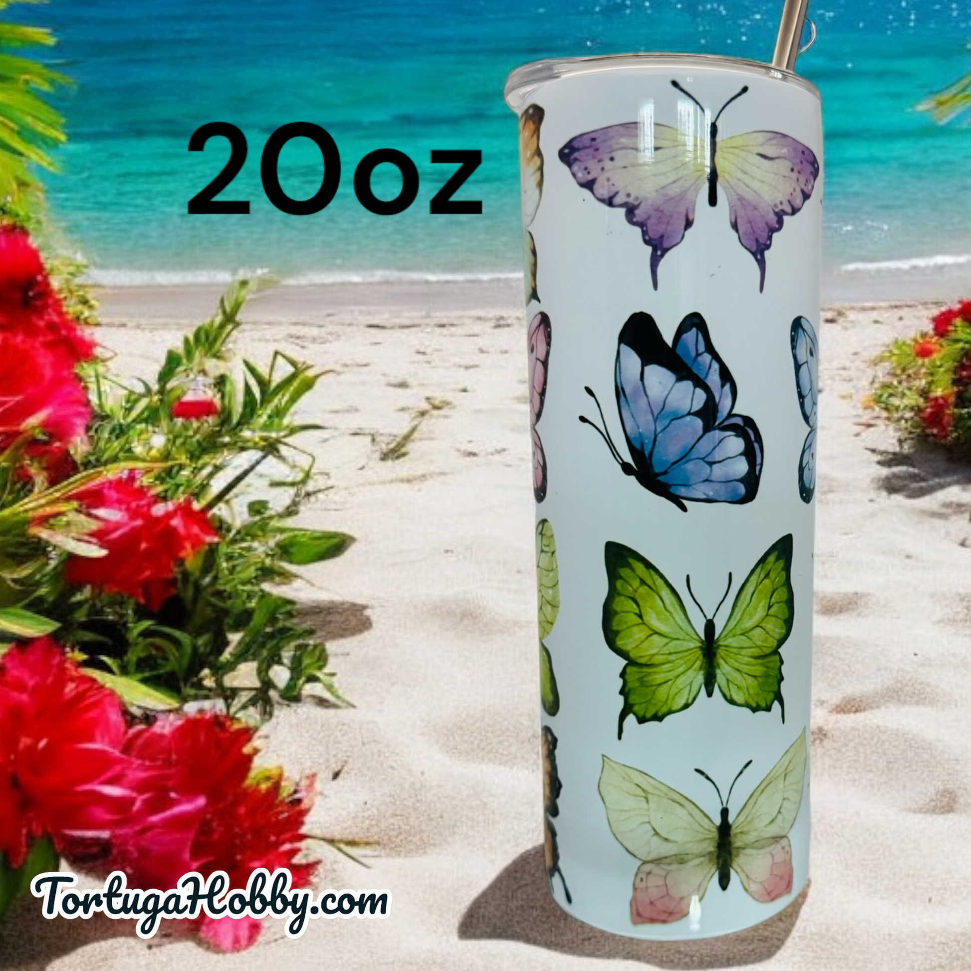 Tumblers - Colorful Butterflies - Thin Stainless Steel 20oz Tumbler