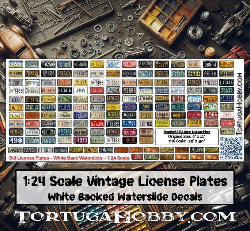 Vintage License Plates - Custom Water Slide Decals for Models & Crafts – Whether your project is 1:24 or 1:18 Scale – Versatile & High-Quality decals are what you need.