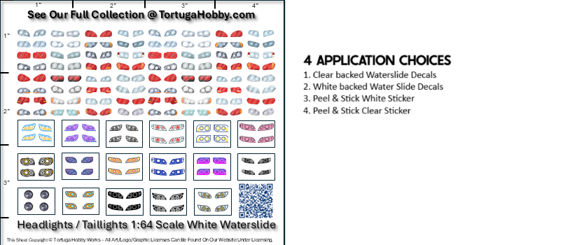 Decals - Headlights/taillights 1:64 Scale - Clear & White Water Slide Decals