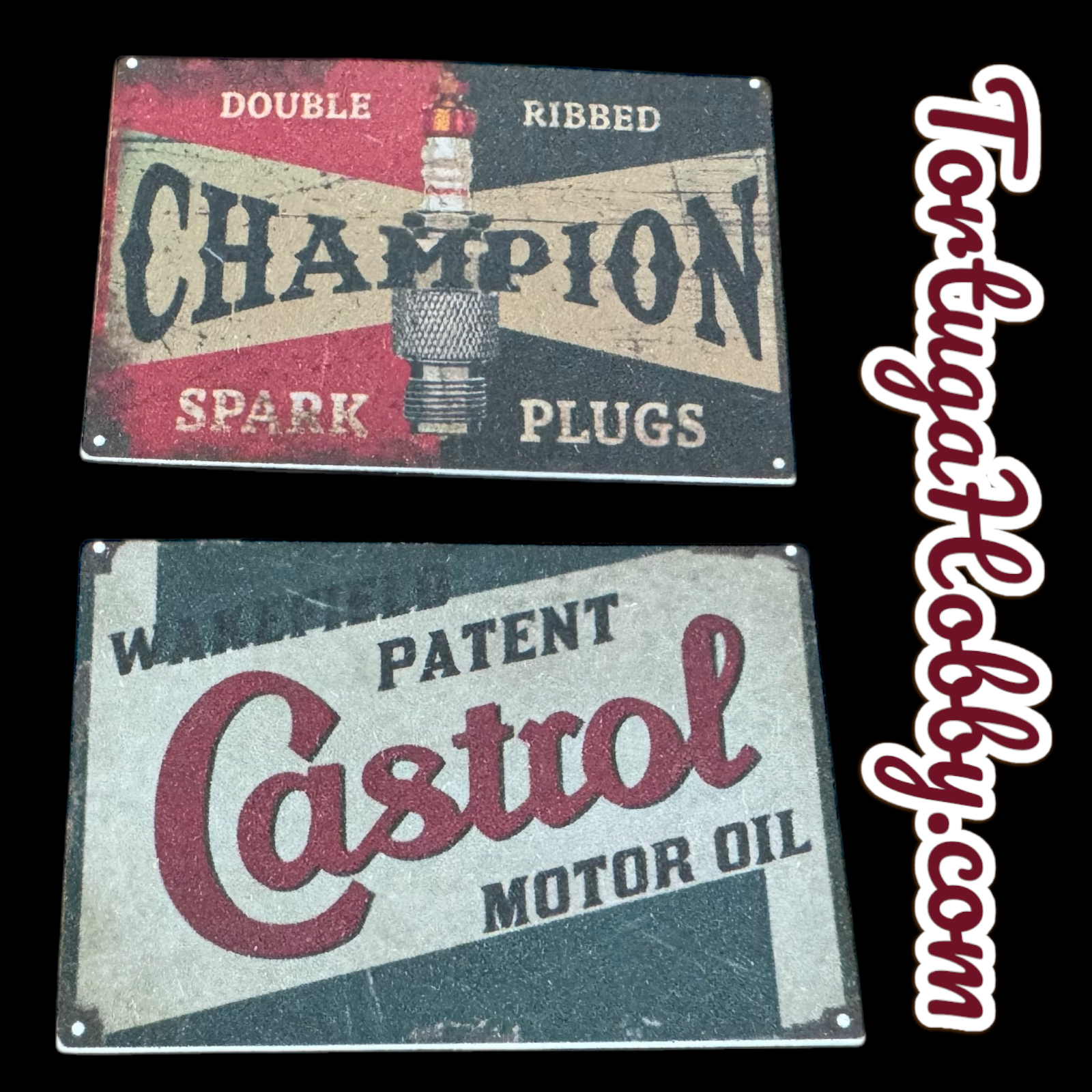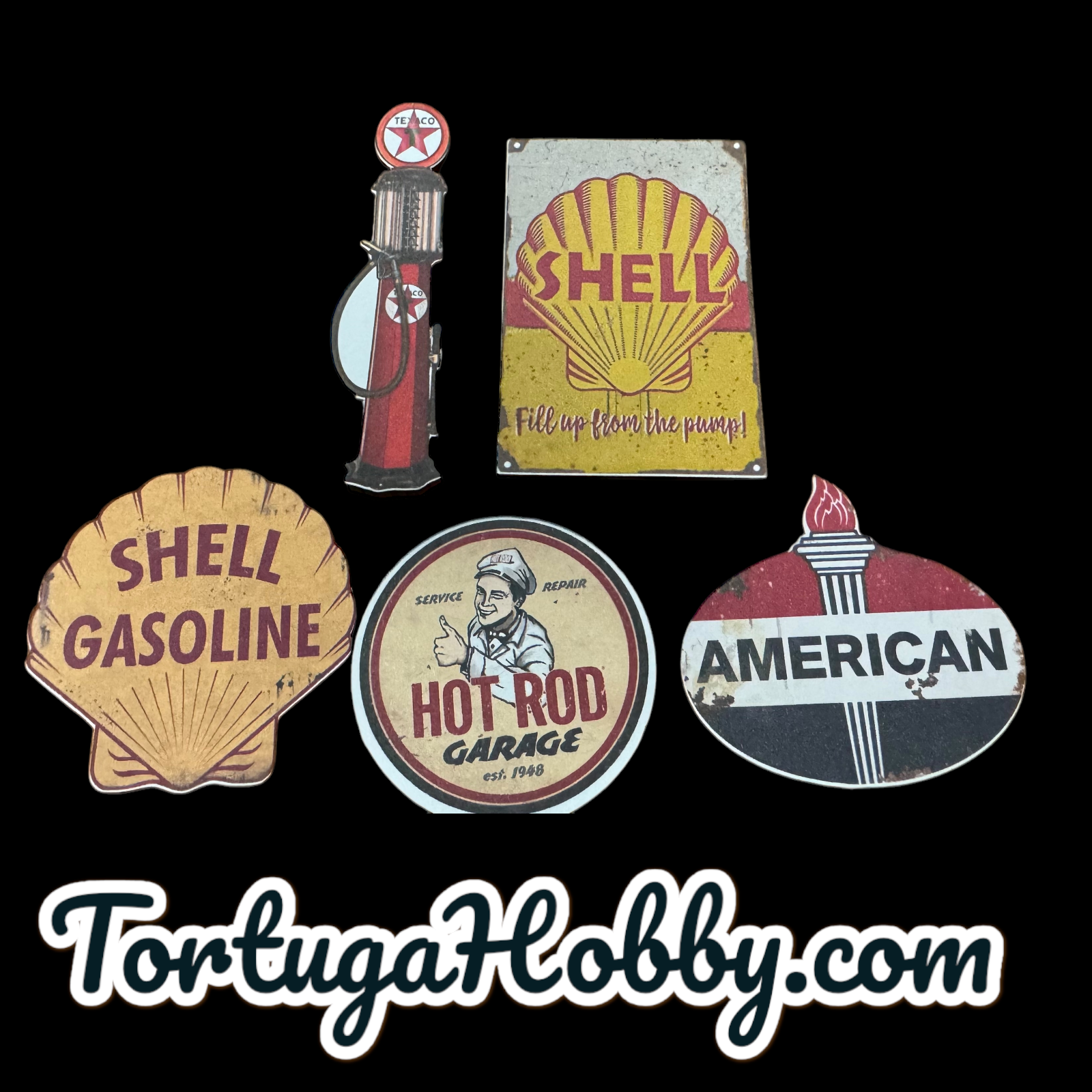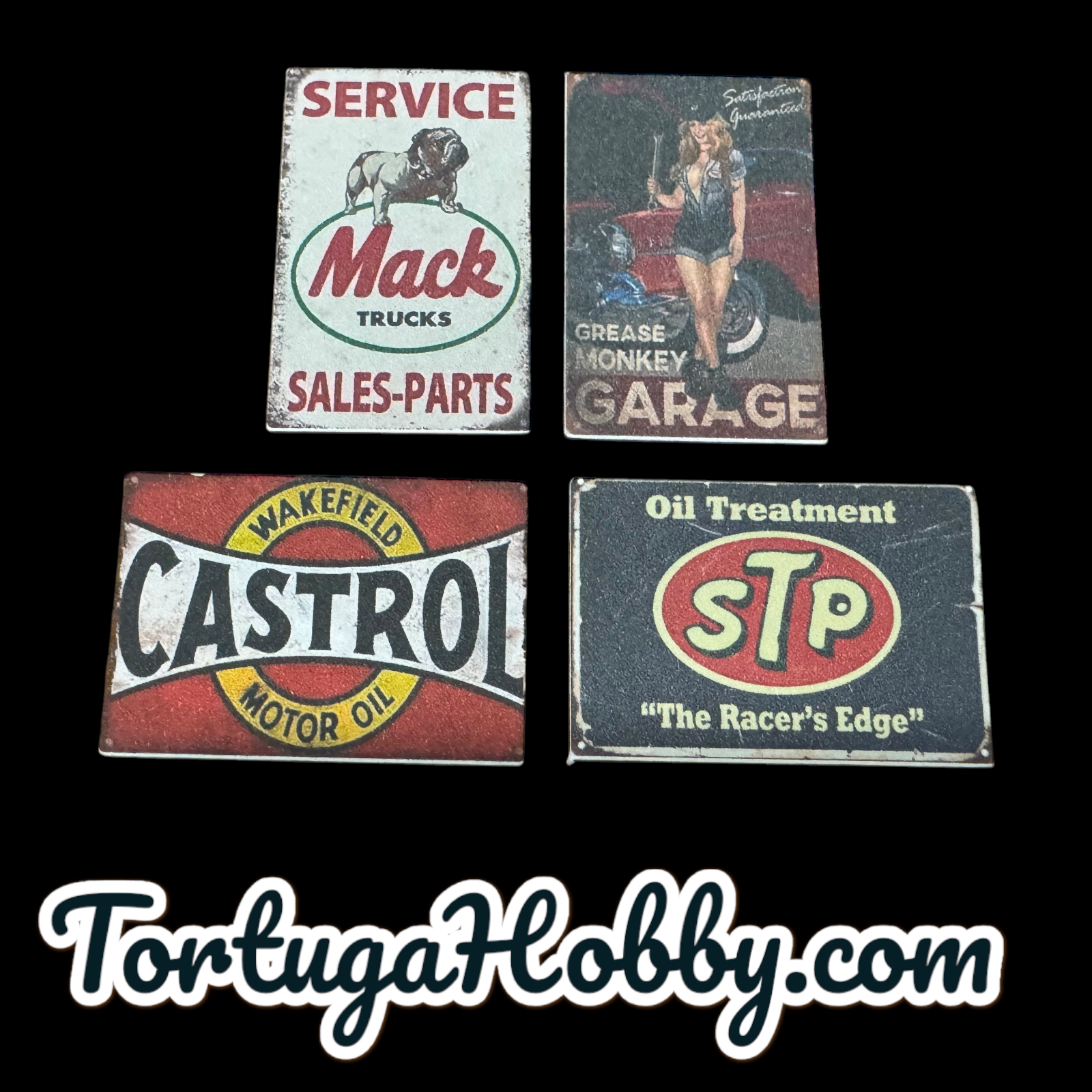 Perfect for model car displays, scale garages, train layouts, and dioramas, these signs feature detailed designs, vibrant colors, and a weathered vintage aesthetic that make them look like they’ve been hanging in a real shop for decades. Whether you’re recreating a historic service station or adding realism to your hobby setup, our signs are the perfect finishing touch!