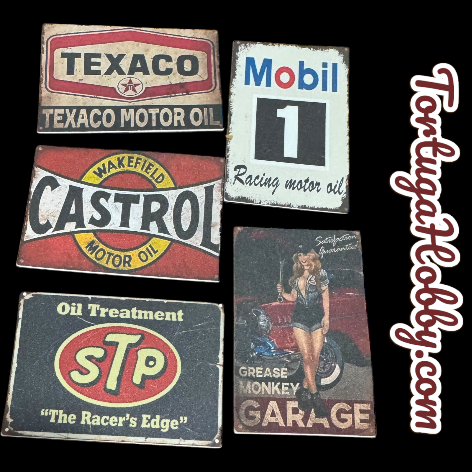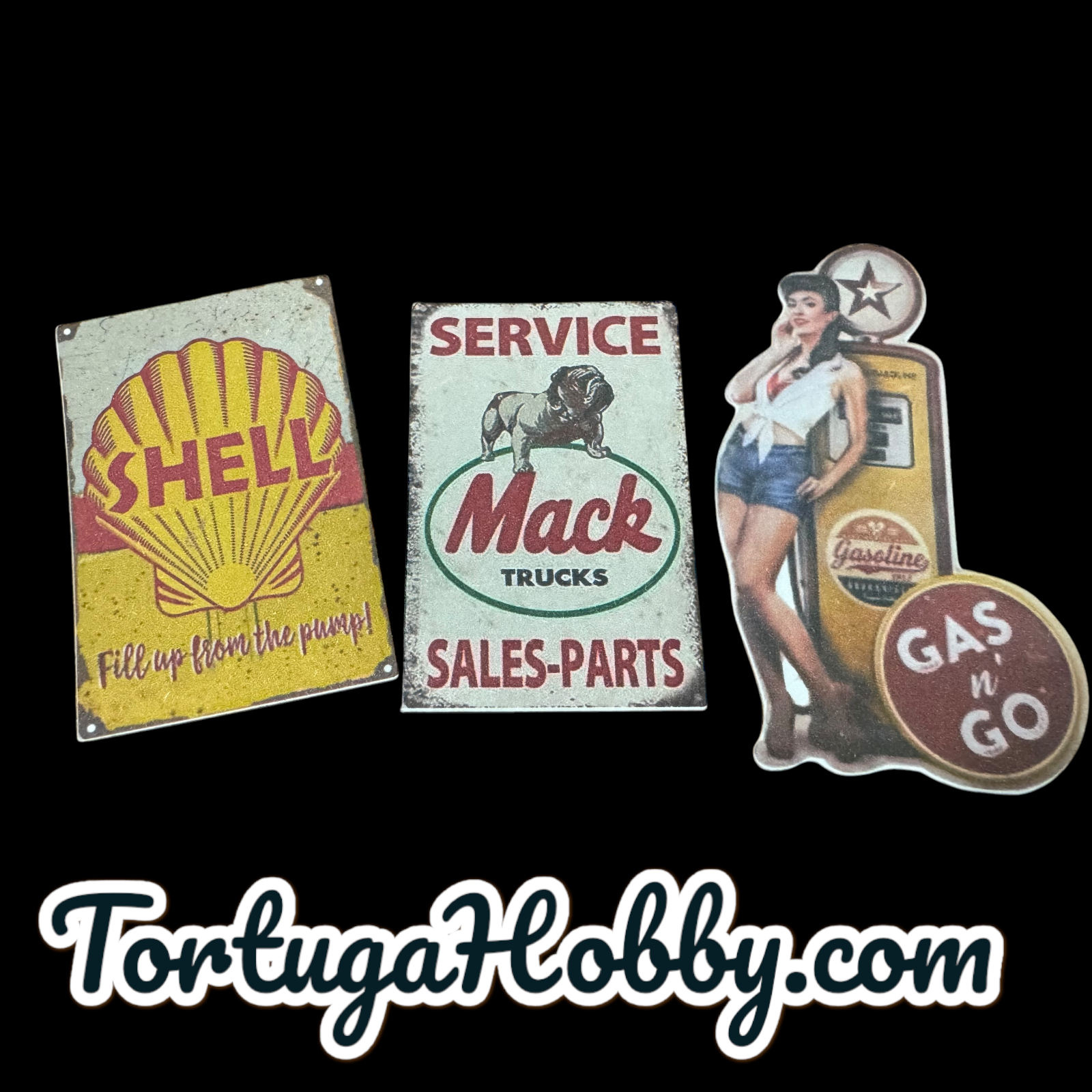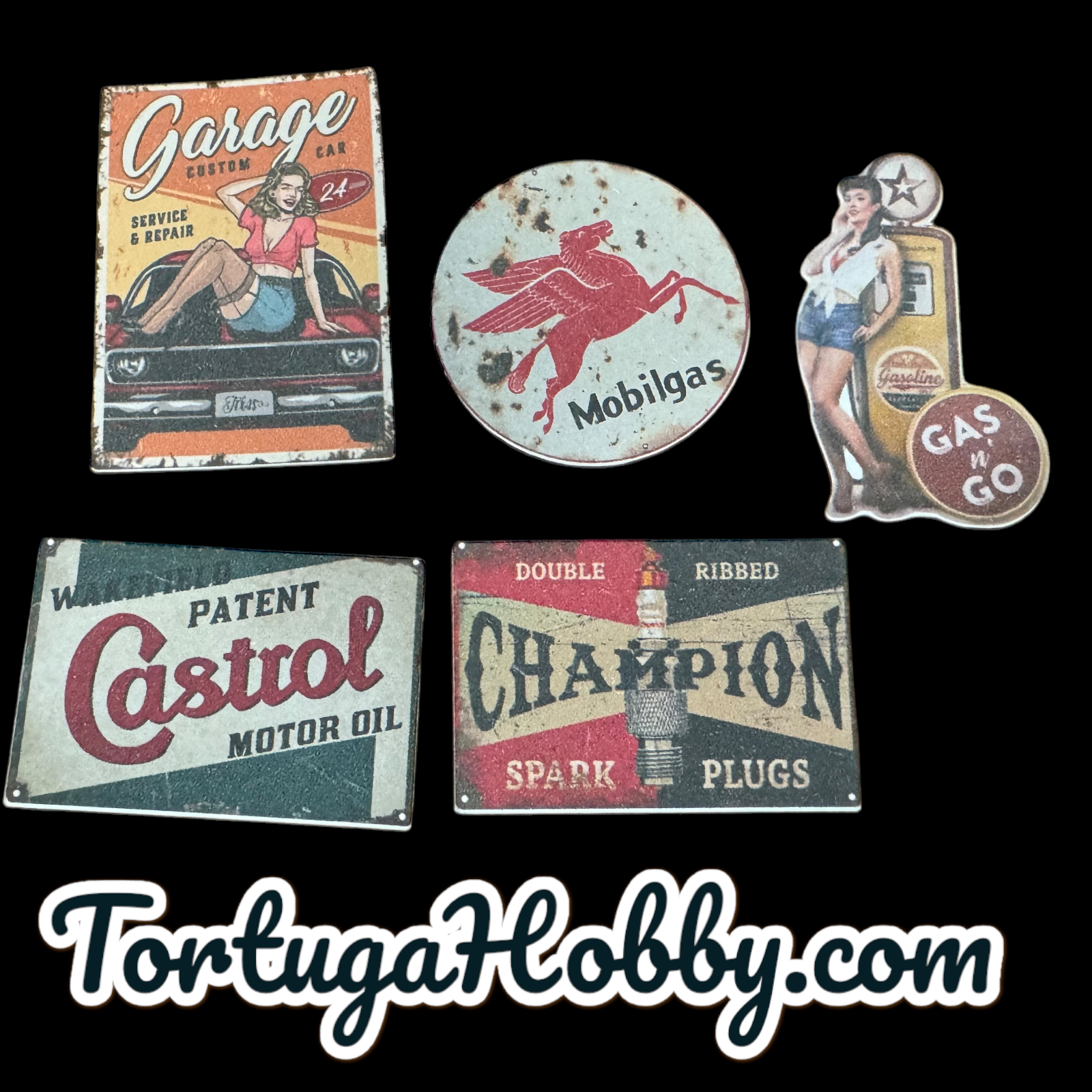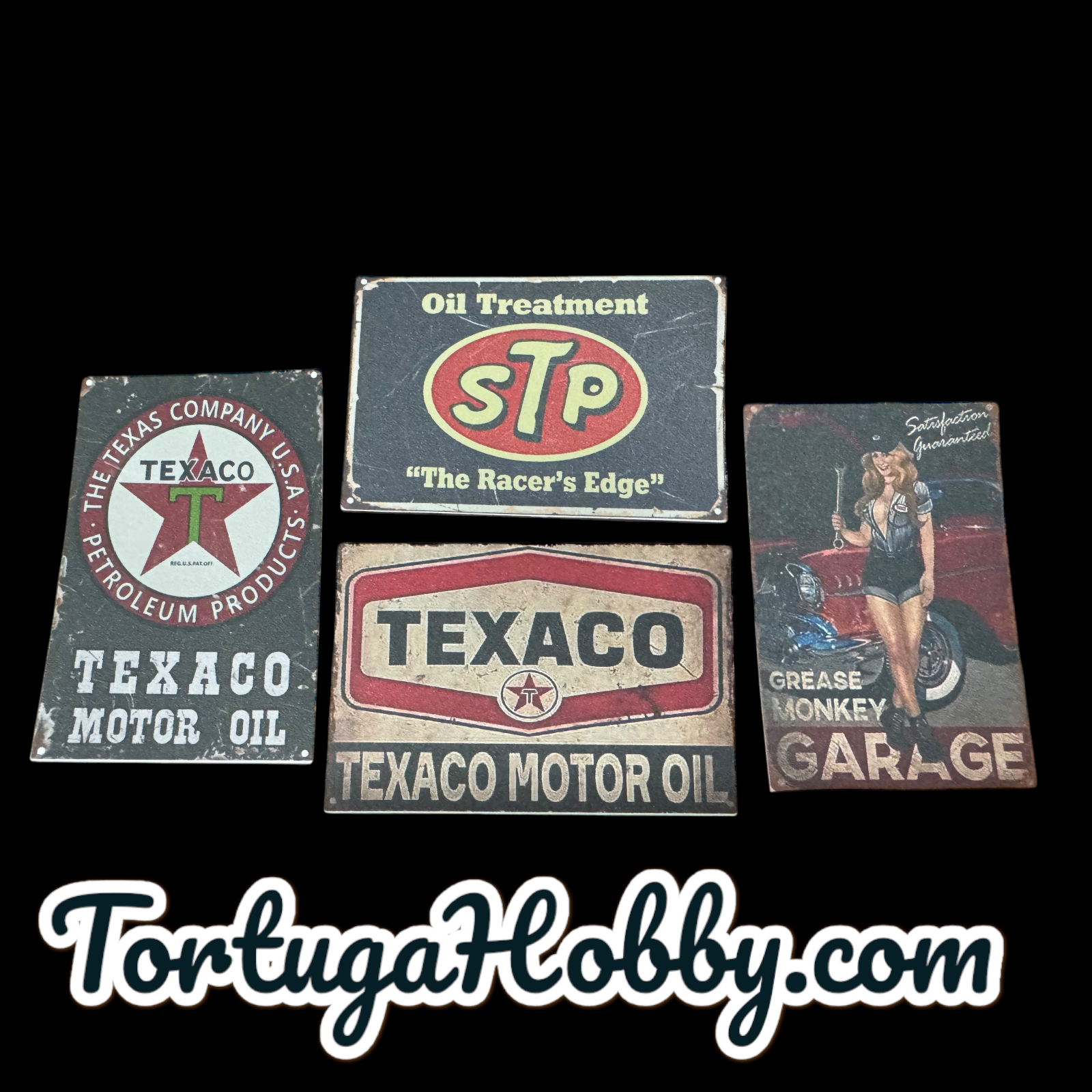 Perfect for model car displays, scale garages, train layouts, and dioramas, these signs feature detailed designs, vibrant colors, and a weathered vintage aesthetic that make them look like they’ve been hanging in a real shop for decades. Whether you’re recreating a historic service station or adding realism to your hobby setup, our signs are the perfect finishing touch!