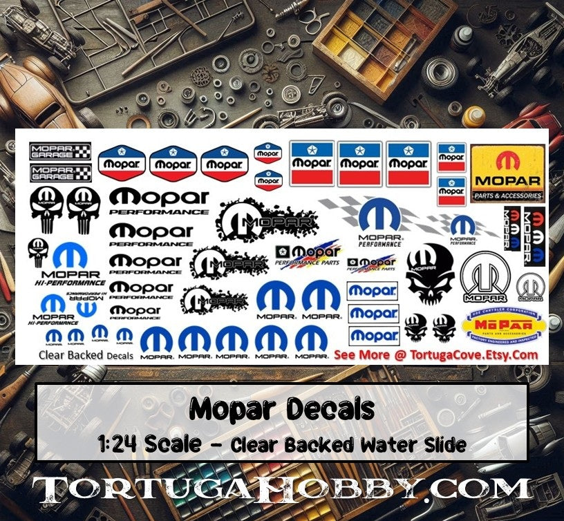 At Tortuga Hobby Works, we are dedicated to creating high-quality, custom decals that enhance your modeling experience. Our clear water-slide decals are easy to apply, durable, and designed to make your models stand out. The Mopar decal set is crafted to bring the spirit of performance and muscle car heritage to your projects, making them unique and visually appealing.