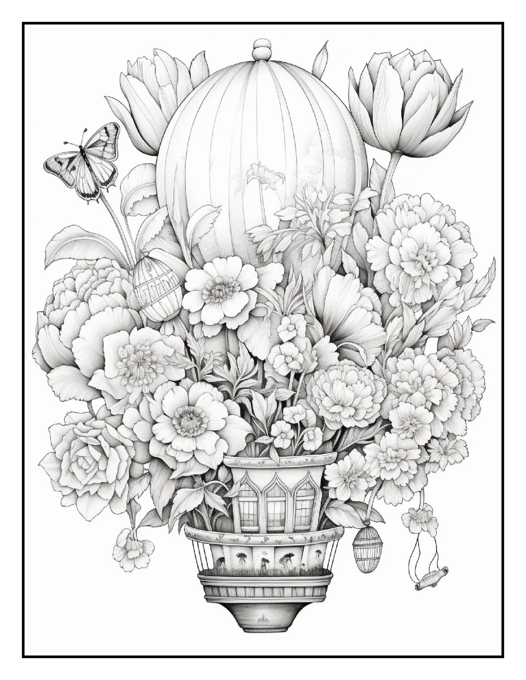 This enchanting coloring book brings together the magic of hot air balloons and the beauty of blooming flowers, creating a unique and delightful experience for colorists of all ages.