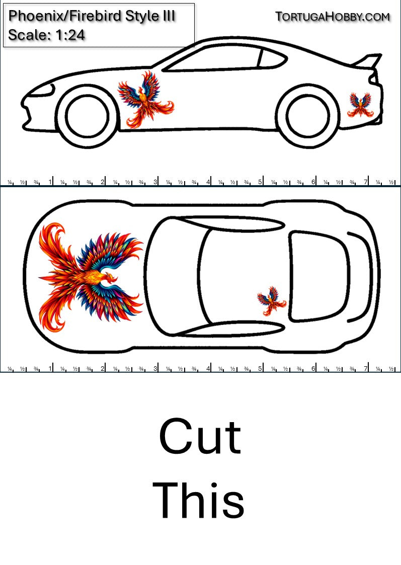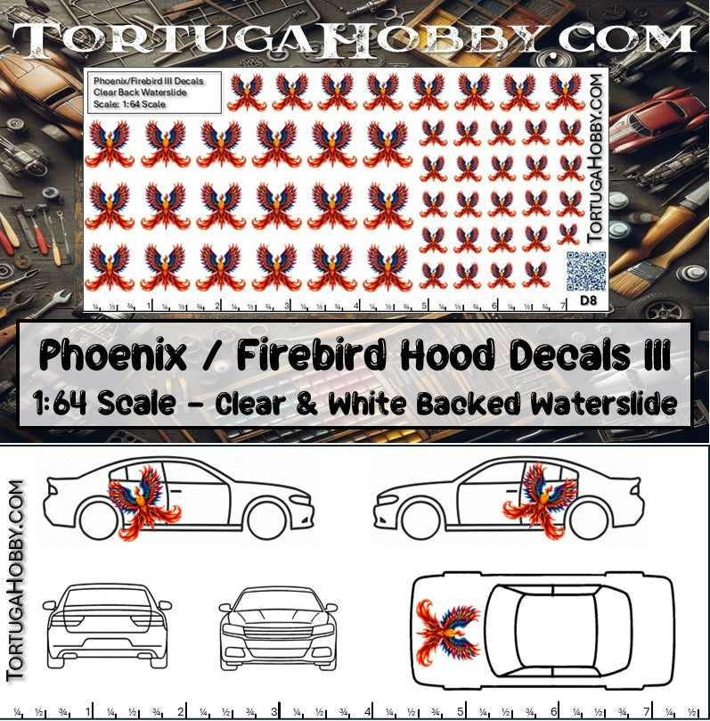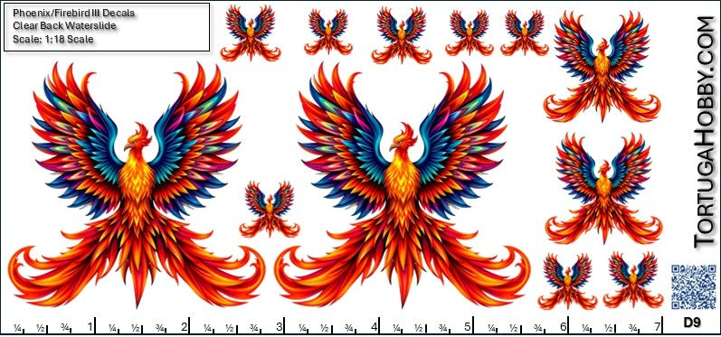 Transform your models into eye-catching masterpieces with our Phoenix/Firebird decal! Upgrade your bird today! Includes 2 sheets, 1 clear back and 1 white back waterslide.