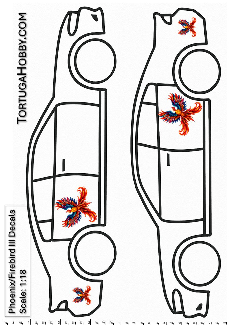 Phoenix/Firebird III - Clear and White Waterslide Decals - 1:18, 1:24 & 1:64 Scale