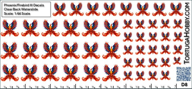At Tortuga Hobby Works, we pride ourselves on crafting high-quality, custom decals that enhance your modeling experience. Our clear water-slide decals are easy to apply, durable, and designed to make your models stand out. The Phoenix is a standout addition to your projects.