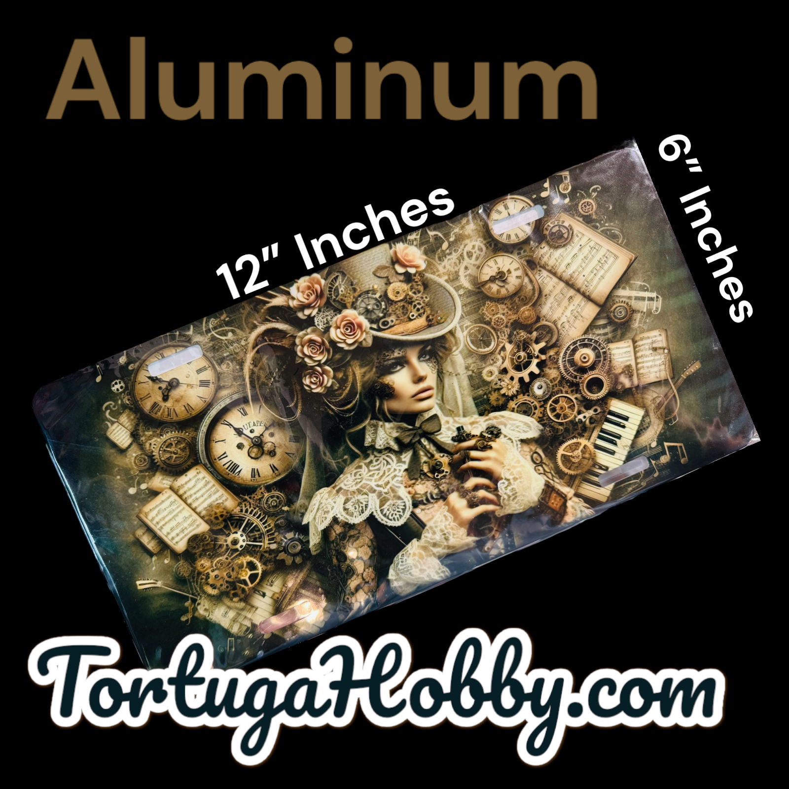 Transform your vehicle into a statement of steampunk elegance with our custom front license/vanity plate, featuring original and exclusive artwork of our Time Misstress. Perfect for cars and trucks, this license plate combines striking design with durable materials, ensuring your ride stands out on the road.