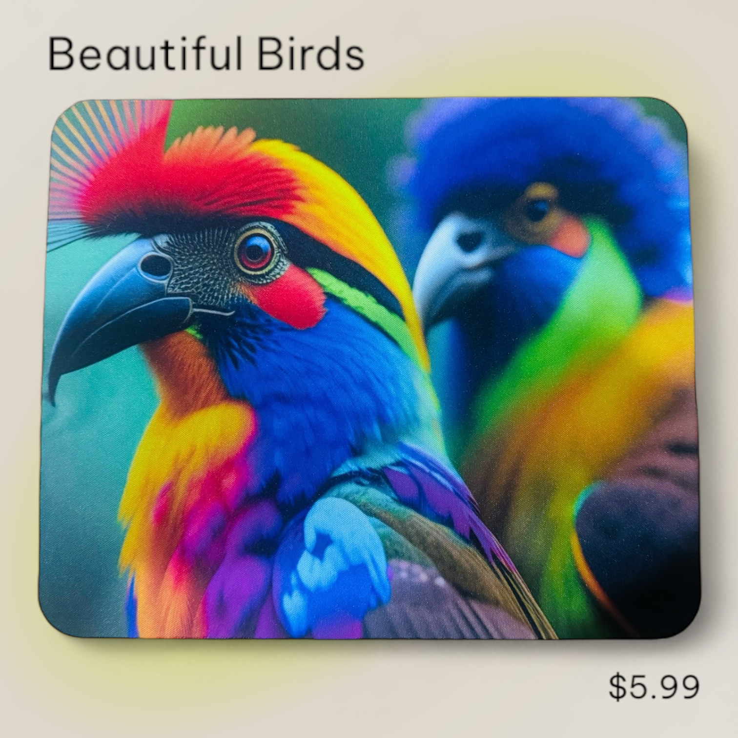 Enhance your workspace with our stunning Pretty Birds Multi-Mat. This mat features two beautiful, colorful birds side-by-side.