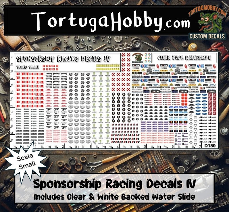 At Tortuga Hobby Works, we specialize in crafting high-quality, custom decals that elevate your modeling experience. Our clear water-slide decals are easy to apply, durable, and designed to make your models stand out. The Racing Sponsorship Logos decal set is created to bring the thrill of the racing world to your projects, making them unique and visually appealing.