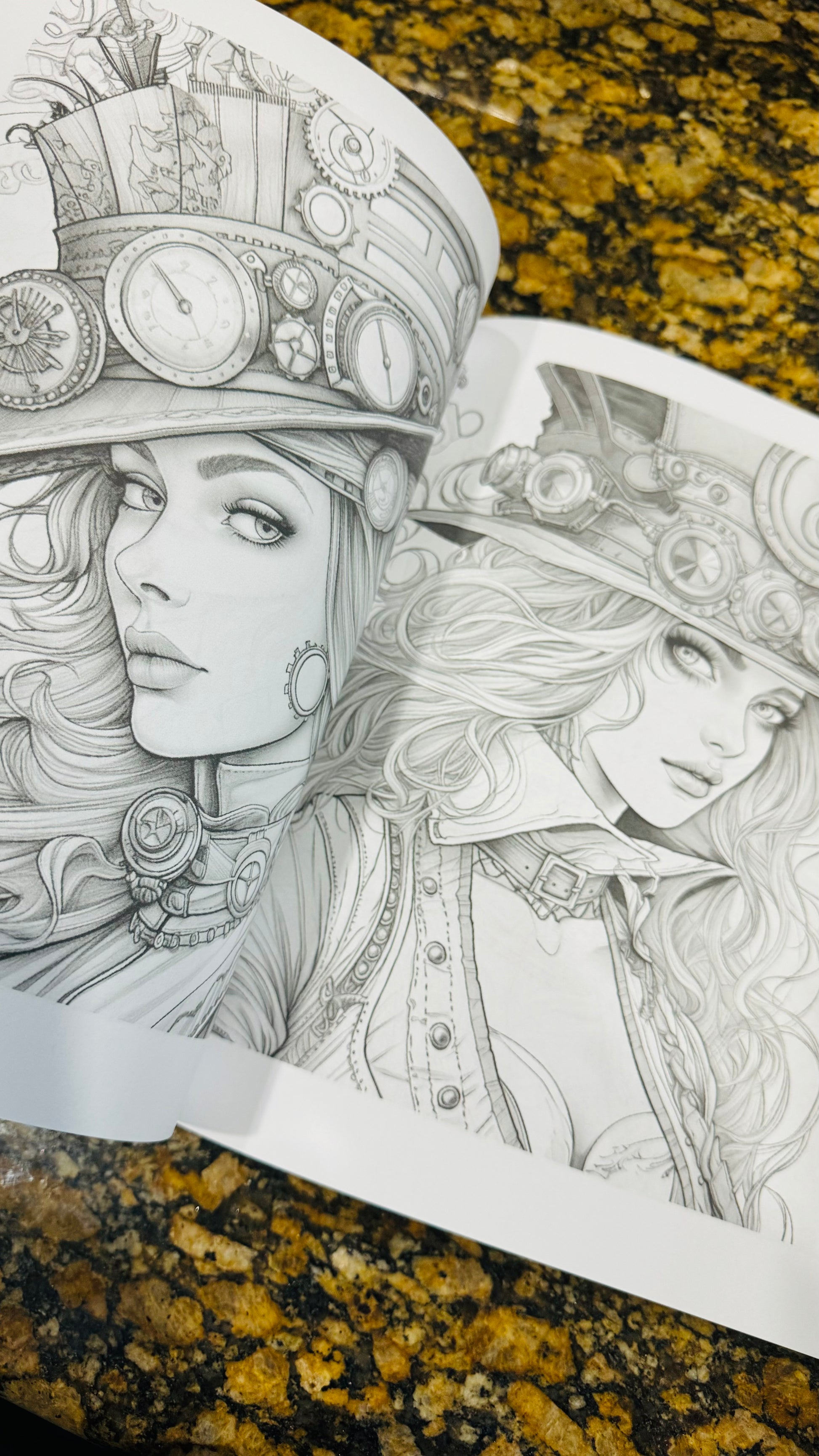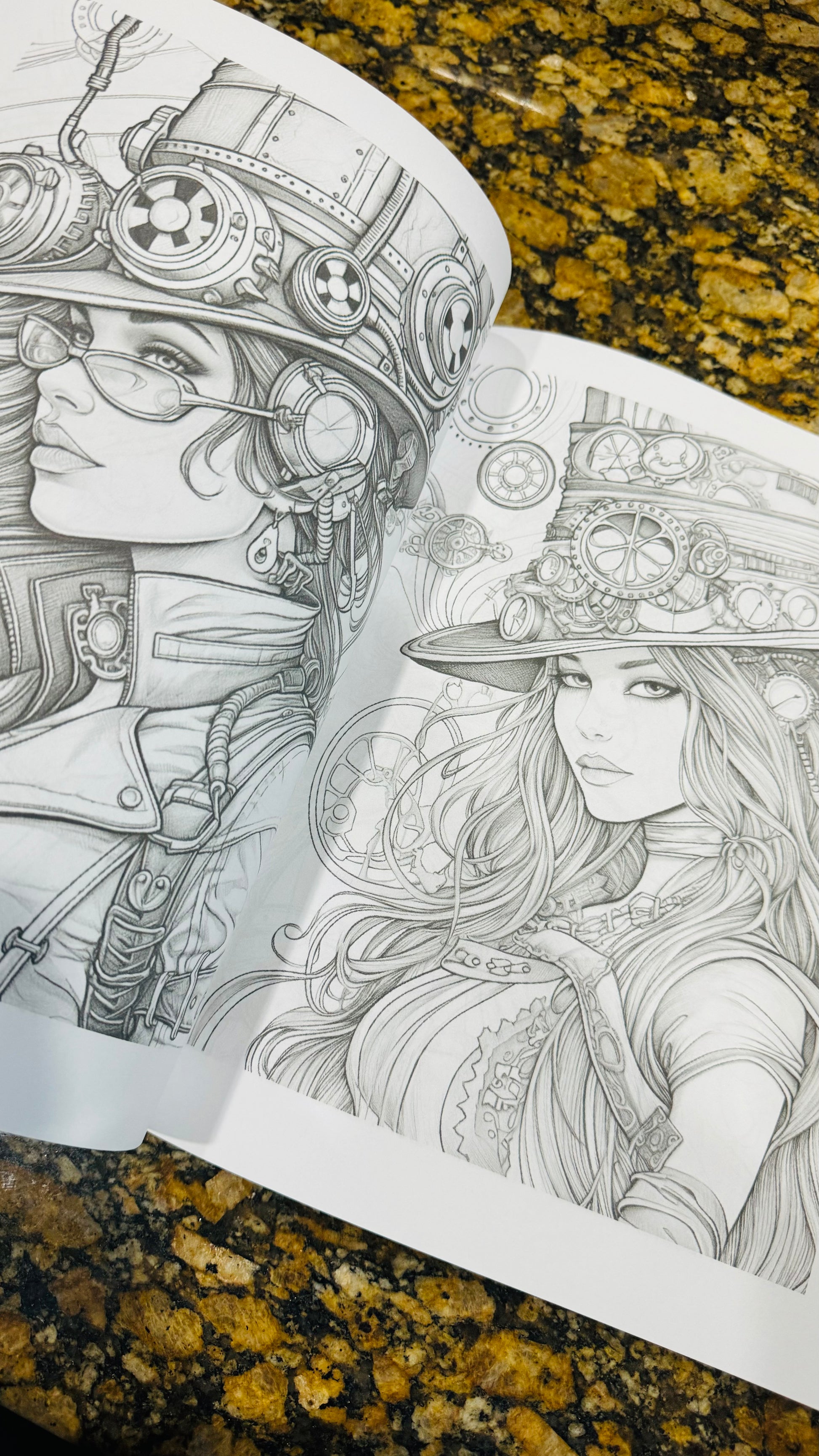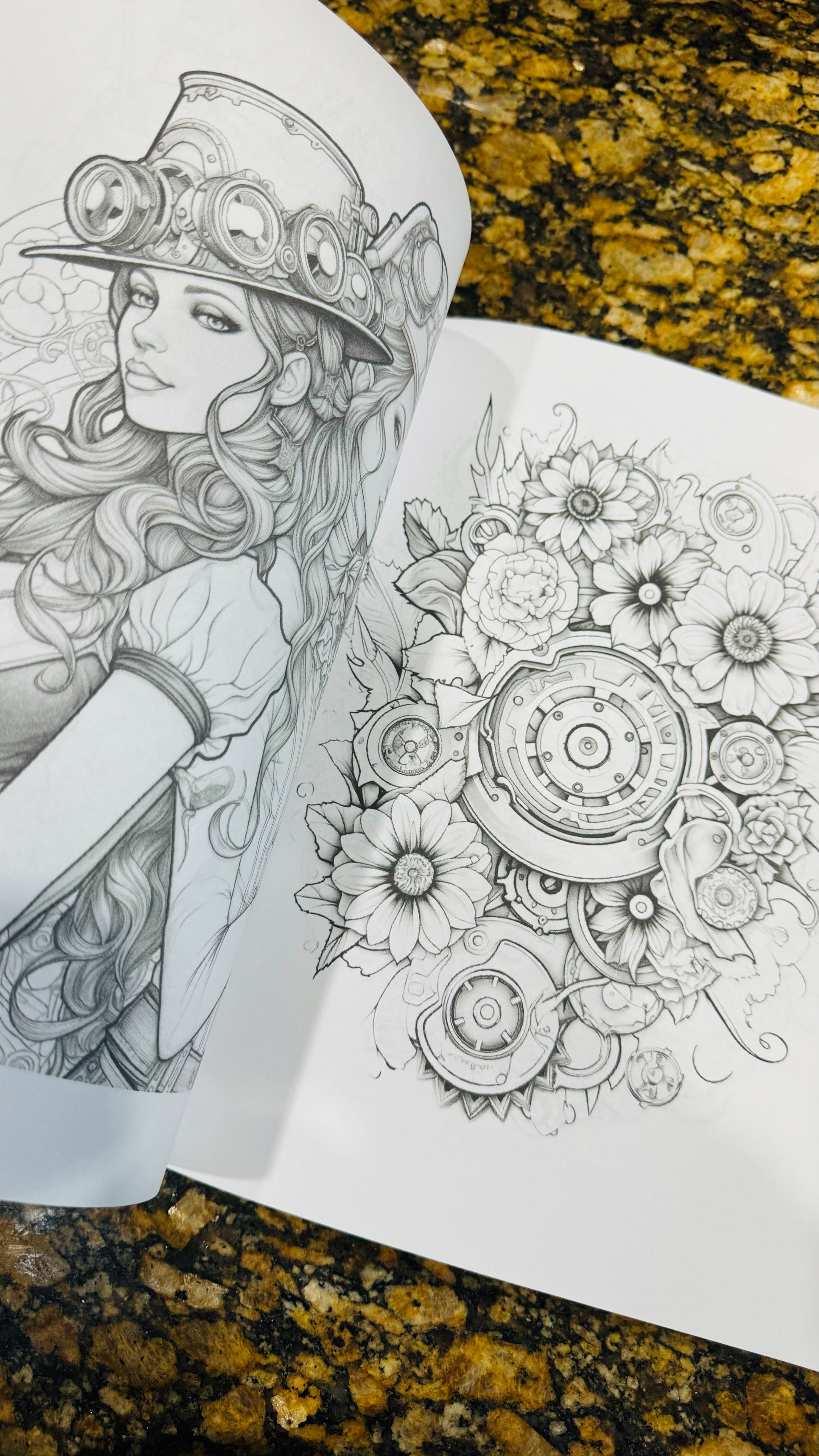 Enter into the fantastical world of Steampunk with this over 100-page coloring book, designed to ignite your imagination and transport you to an era where Victorian elegance meets futuristic innovation. "Steampunk Dreams: A Coloring Adventure" offers a mesmerizing collection of intricate designs and captivating scenes that blend the best of 19th-century aesthetics with advanced technology, creating a universe where gears, goggles, and steam-powered machinery reign supreme.