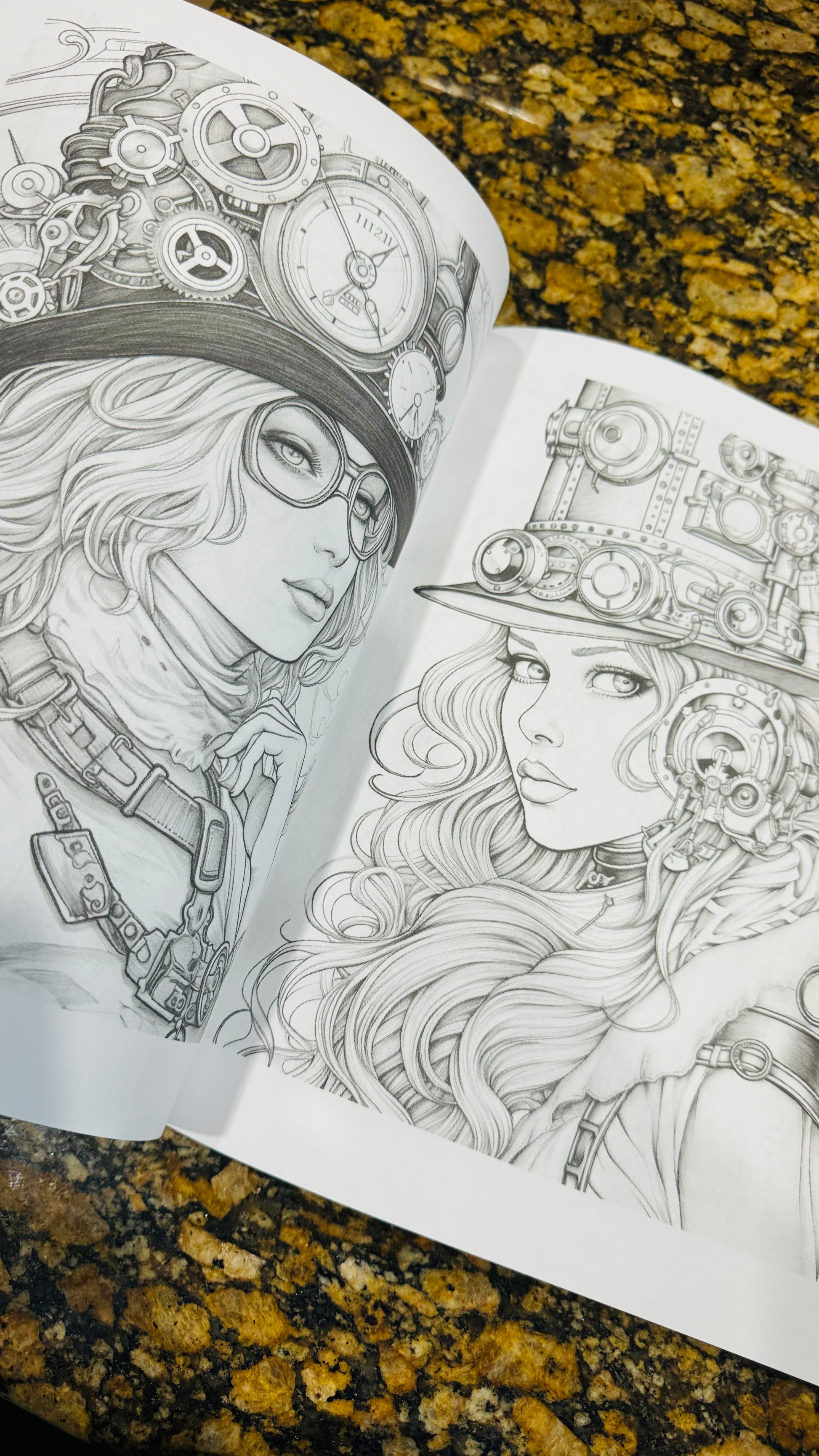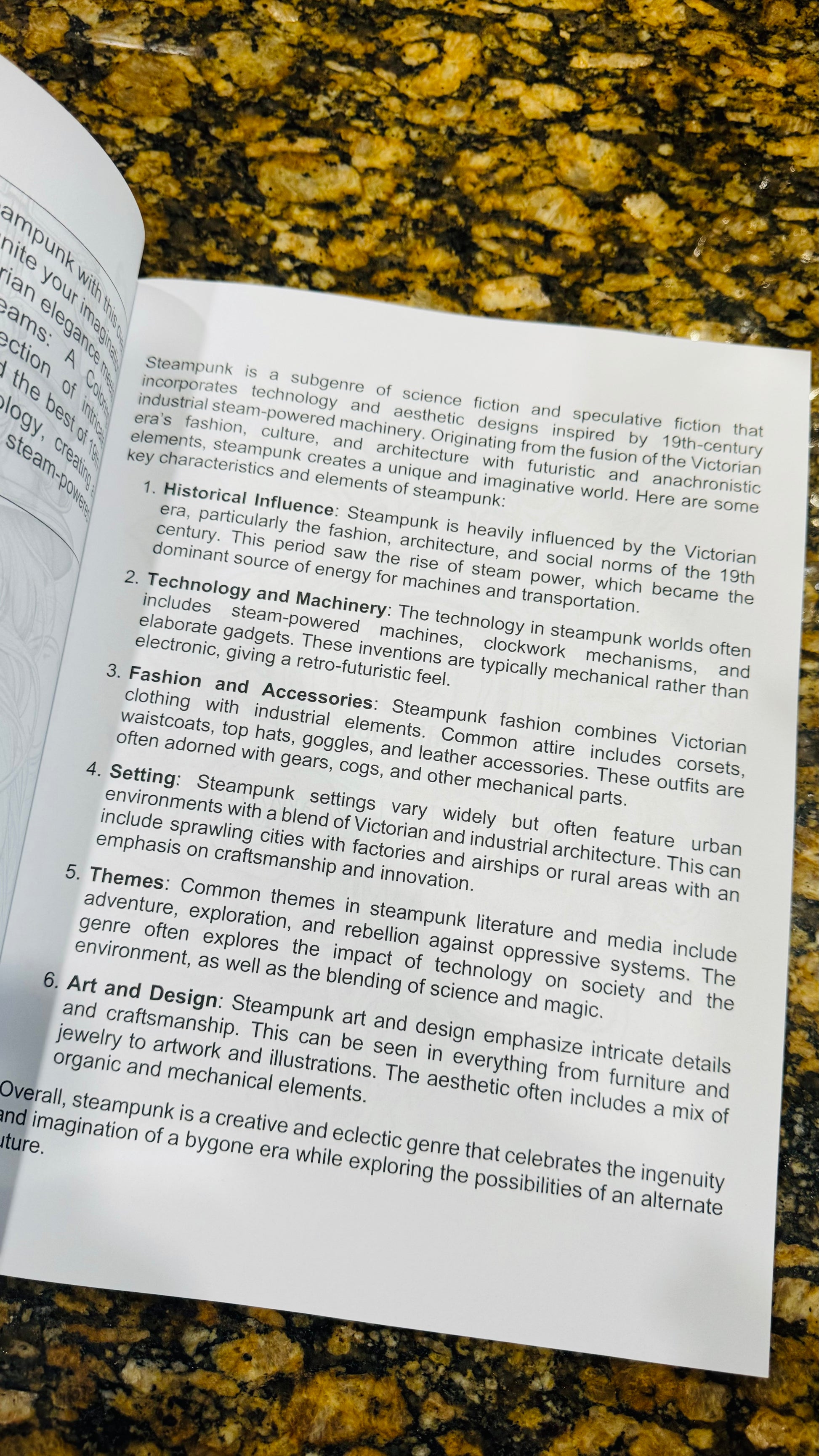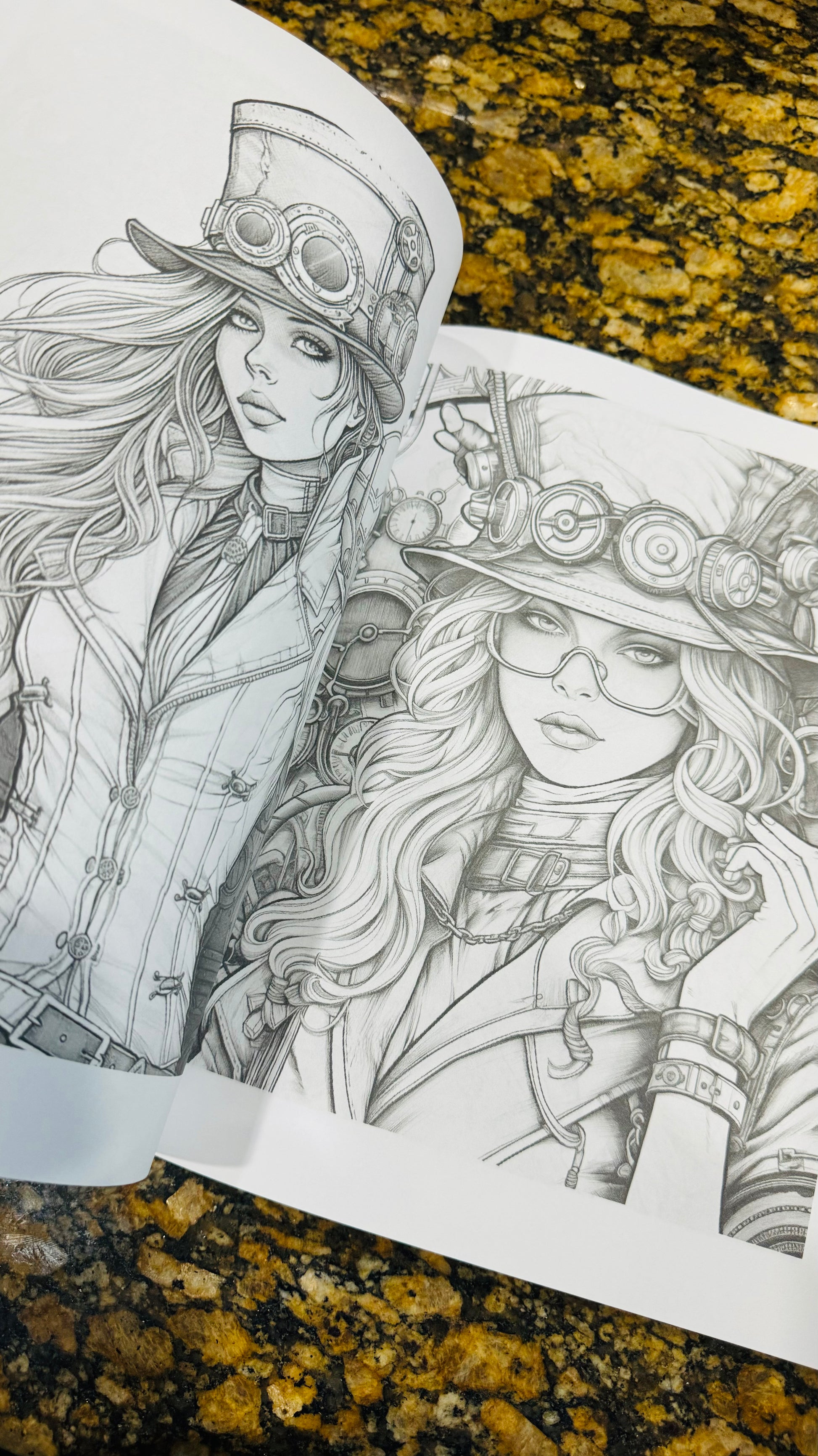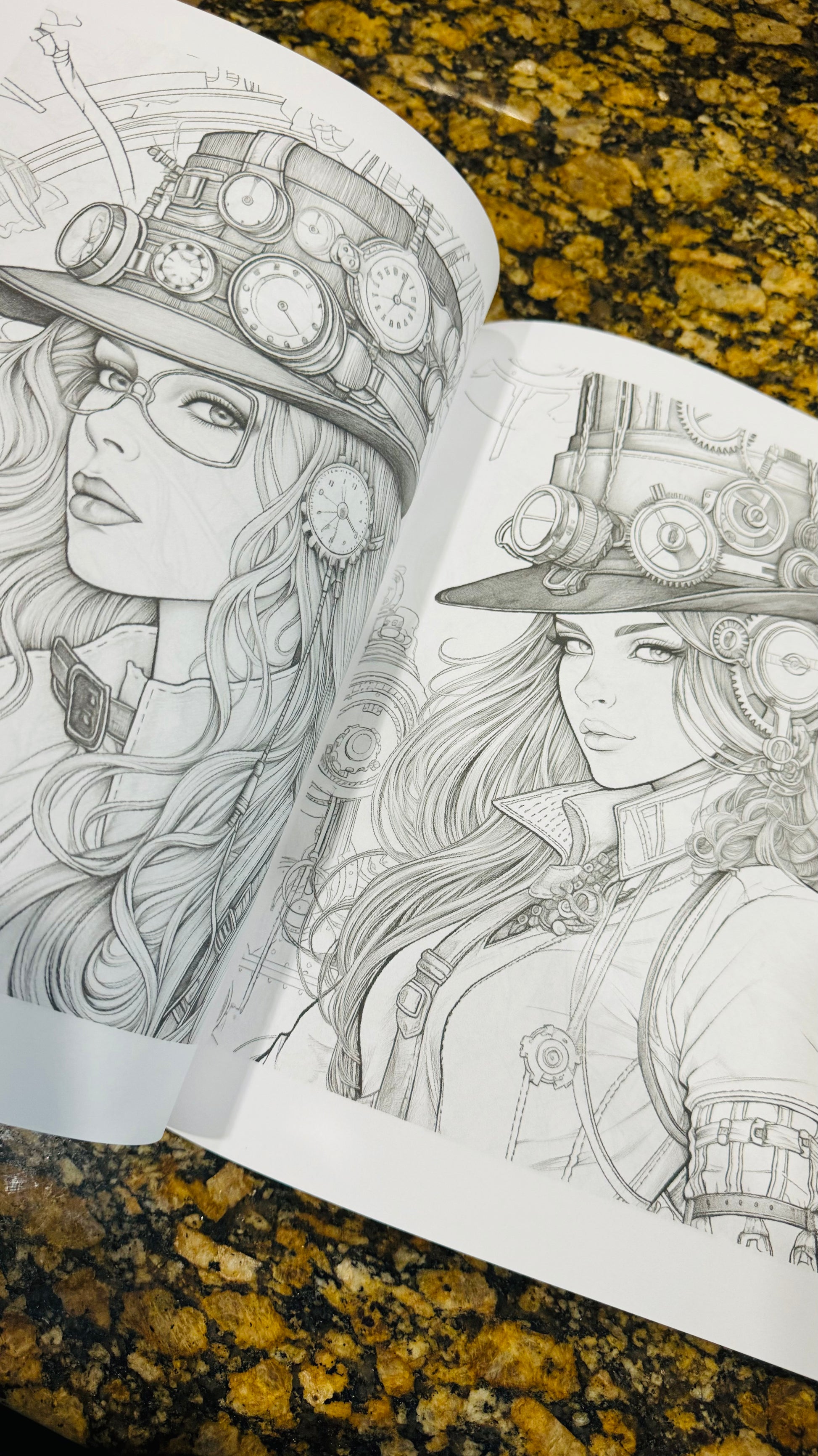 Enter into the fantastical world of Steampunk with this over 100-page coloring book, designed to ignite your imagination and transport you to an era where Victorian elegance meets futuristic innovation. "Steampunk Dreams: A Coloring Adventure" offers a mesmerizing collection of intricate designs and captivating scenes that blend the best of 19th-century aesthetics with advanced technology, creating a universe where gears, goggles, and steam-powered machinery reign supreme.