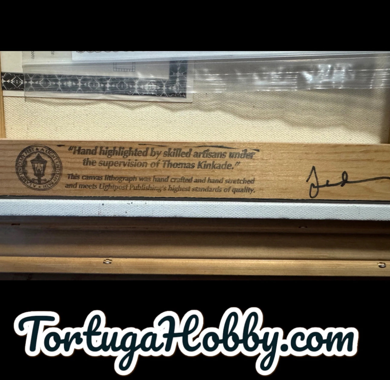 Limited Edition CanvasThomas Kinkade Limited Edition Canvases combine old world craftsmanship with the finest materials and latest production technologies to produce extraordinary canvas artwork. Our reproduction process captures not only the color and mood of Thom's enchanting original painting, but the actual brushwork as well. Every piece is hand-retouched by skilled artisans, giving the painting a look almost identical to the artist's on-easel original. Vibrant colors, rich textures and color tones accurate to Thom's original brushstrokes are the hallmarks of your finished piece. Thomas Kinkade, the Painter of Light™, emphasized simple pleasures and inspirational messages through his art – and the branded products created from that art. From textiles, to collectibles, to music and books, Thom gave credit to a higher power for both the ability and the inspiration to create his paintings. His goal as an artist was to touch people of all faiths, to bring peace and joy into their lives through the images he had created. Thom’s dearest wish had always been that his artwork would be a messenger of hope and inspiration to others – a message to slow down, appreciate the little details in life, and to look for beauty in the world around us. As millions of collectors around the world sit back and enjoy his artwork in their homes, there is no doubt that Thomas Kinkade had indeed achieved his goal of Sharing the Light™.Would prefer local pickup in the Houston, TX area as to not risk shipping, however, it will be packed abundantly cautious if it needs to be shipped.