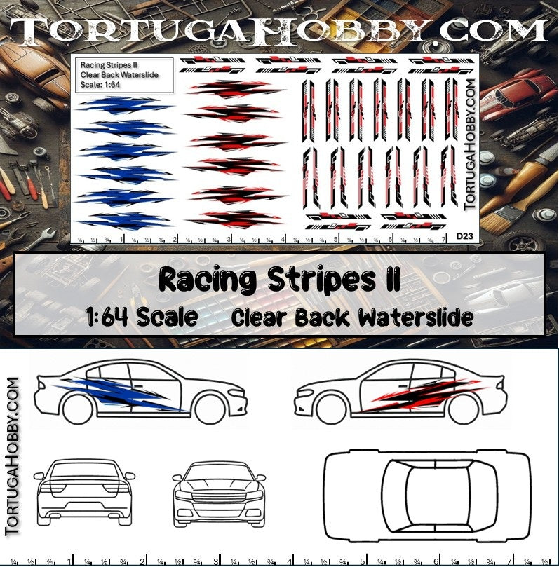 Racing Stripes II - Clear Water Slide Decals 1:24, 1:64 & 1:18 Scale