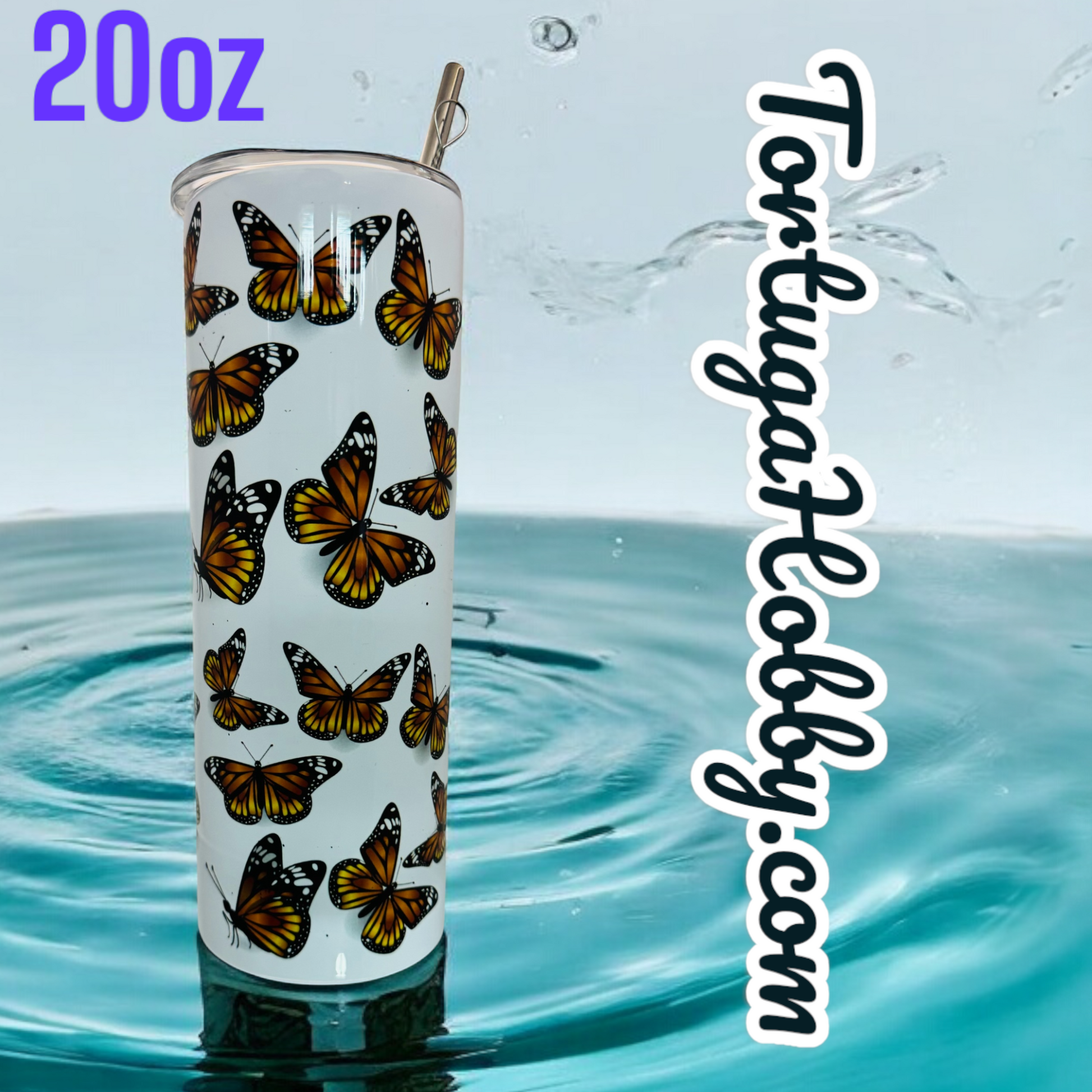 Tumblers - Monarch Butterflies - Thin Stainless Steel 20oz Tumbler