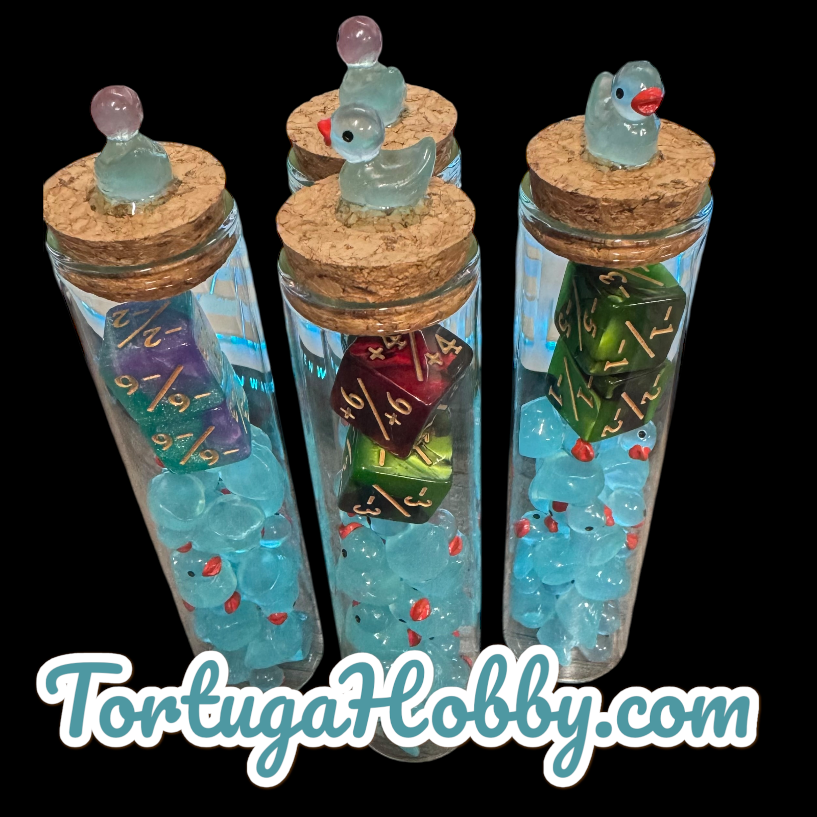Unique Blue Duck Counters for CCG, TCG, Role-Playing and more - All in Glass Tube Set - Make Your Next Game Night Unique