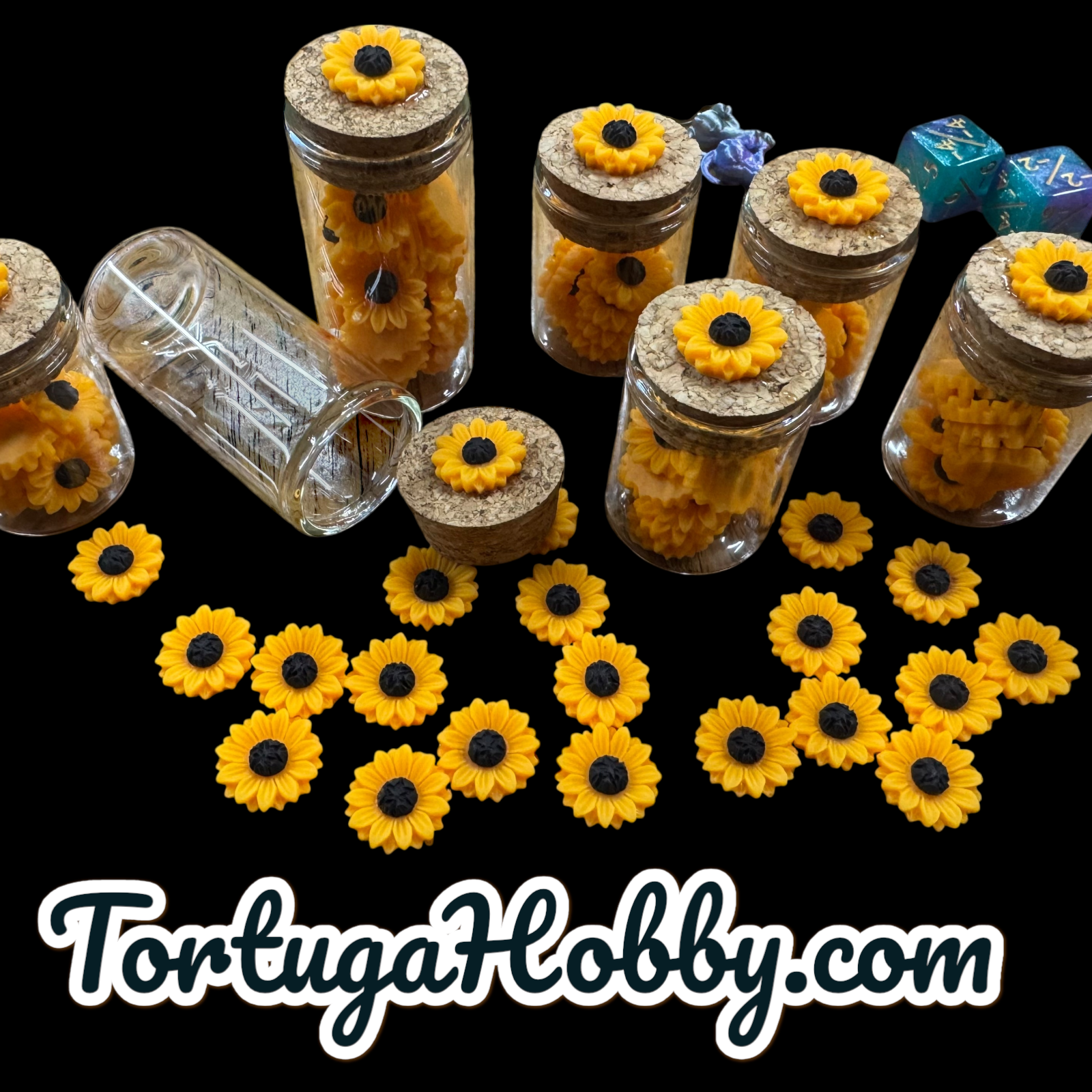Enhance your gaming experience with these Unique Sunflower counters - All in Glass TUBE from Tortuga Hobby Works. The counters are expertly crafted and are perfect for role-playing gamers, TCG’s, CCG's and other gaming needs.